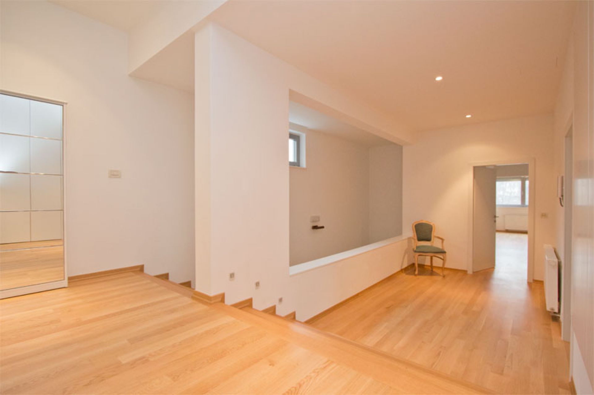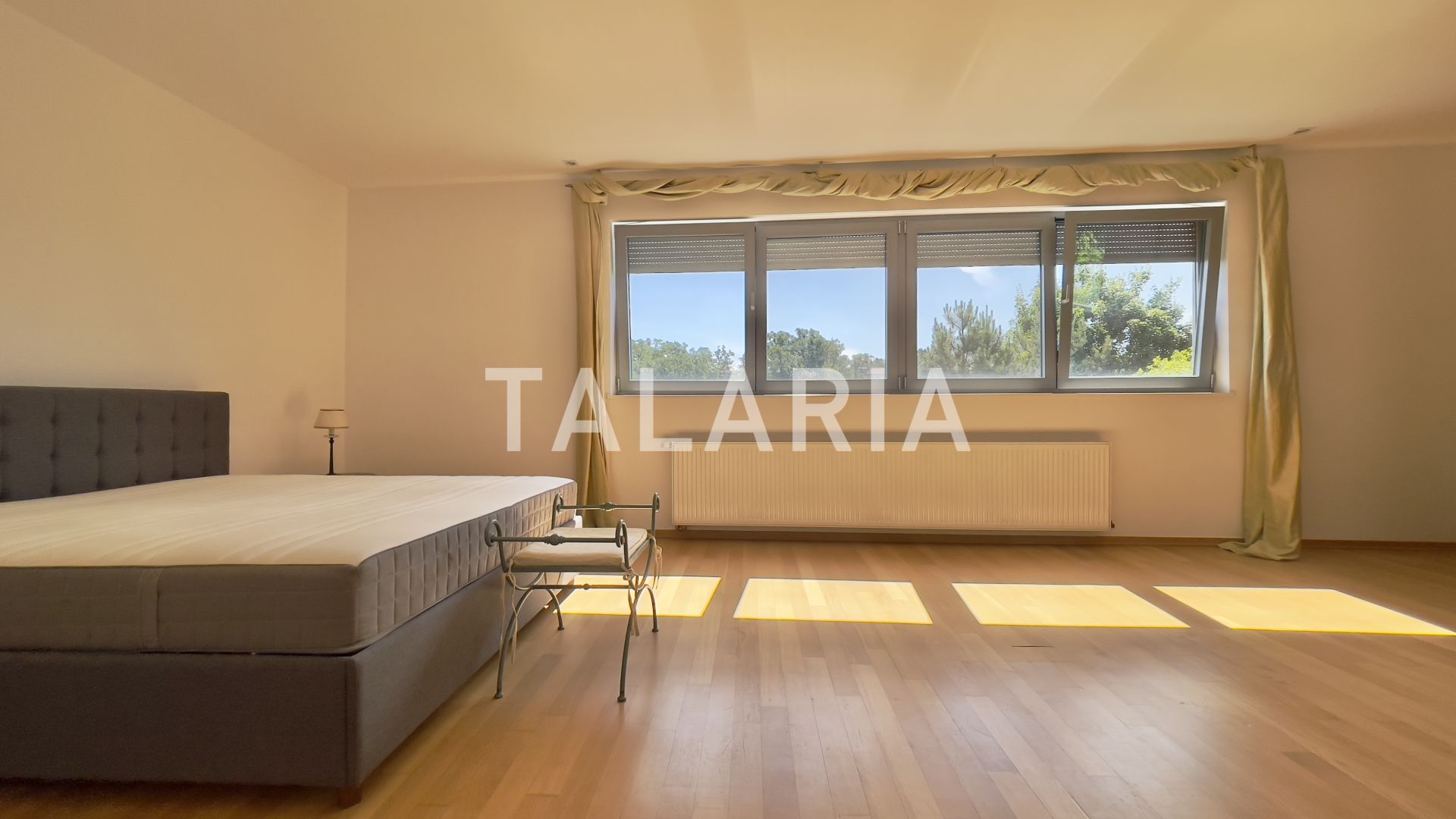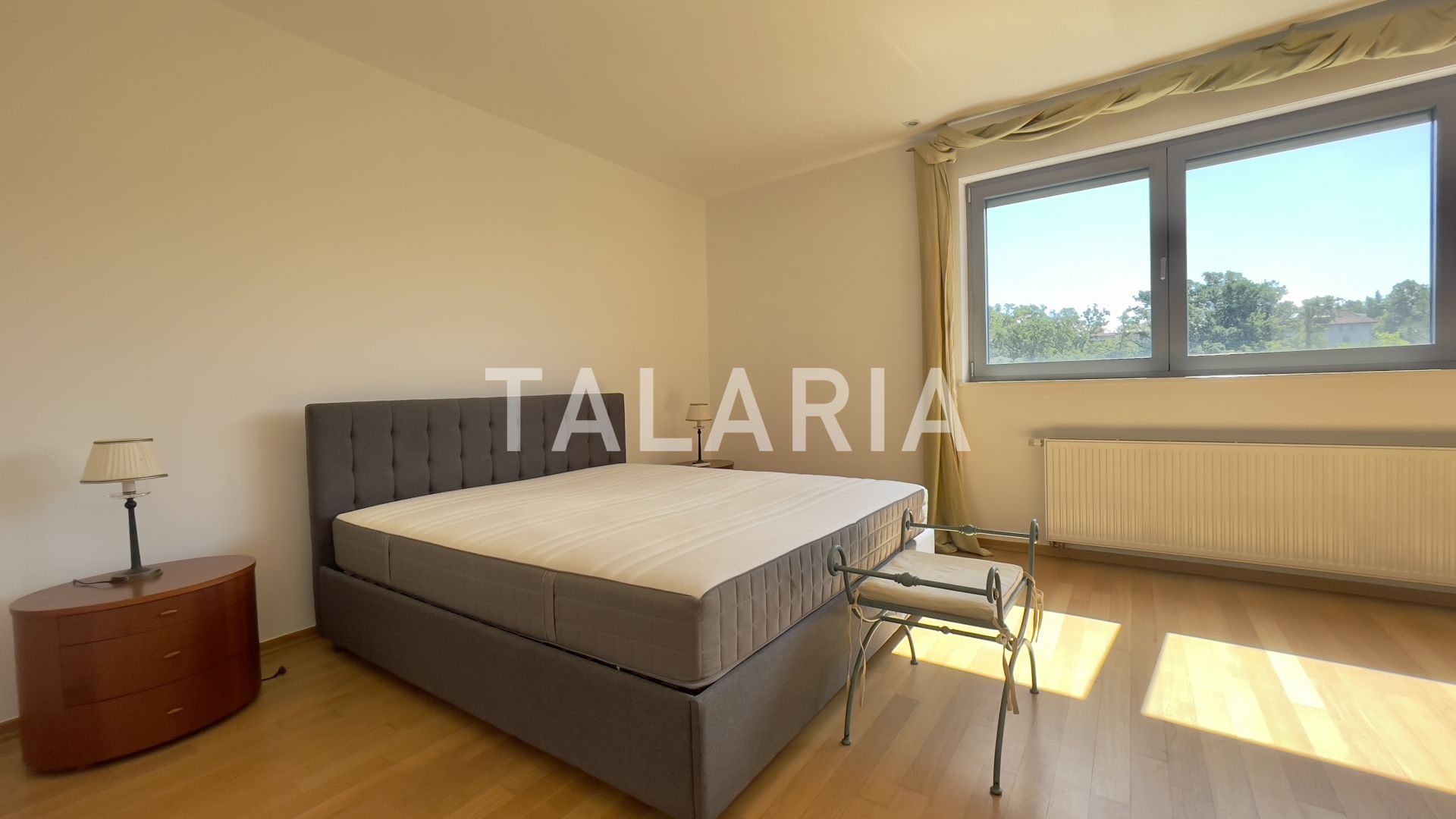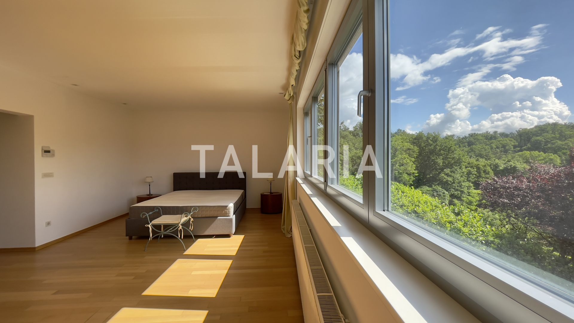 A beautiful two-story apartment in a newer urban villa from 2007 with a garden and a view of the greenery. The apartment is located in a quiet street in Pantovčak, only a 10-minute walk from Britanski trg. On the upper floor of the apartment there are 4 bedrooms, each with its own bathroom (the master bedroom is over 30 square meters). On the lower floor, there is a guest toilet, and a wonderful voluminous living room with kitchen and dining room, which continues to the terrace and garden of 600 m2. Alarm, air conditioning. The apartment has 2 parking spaces in front of the building.
