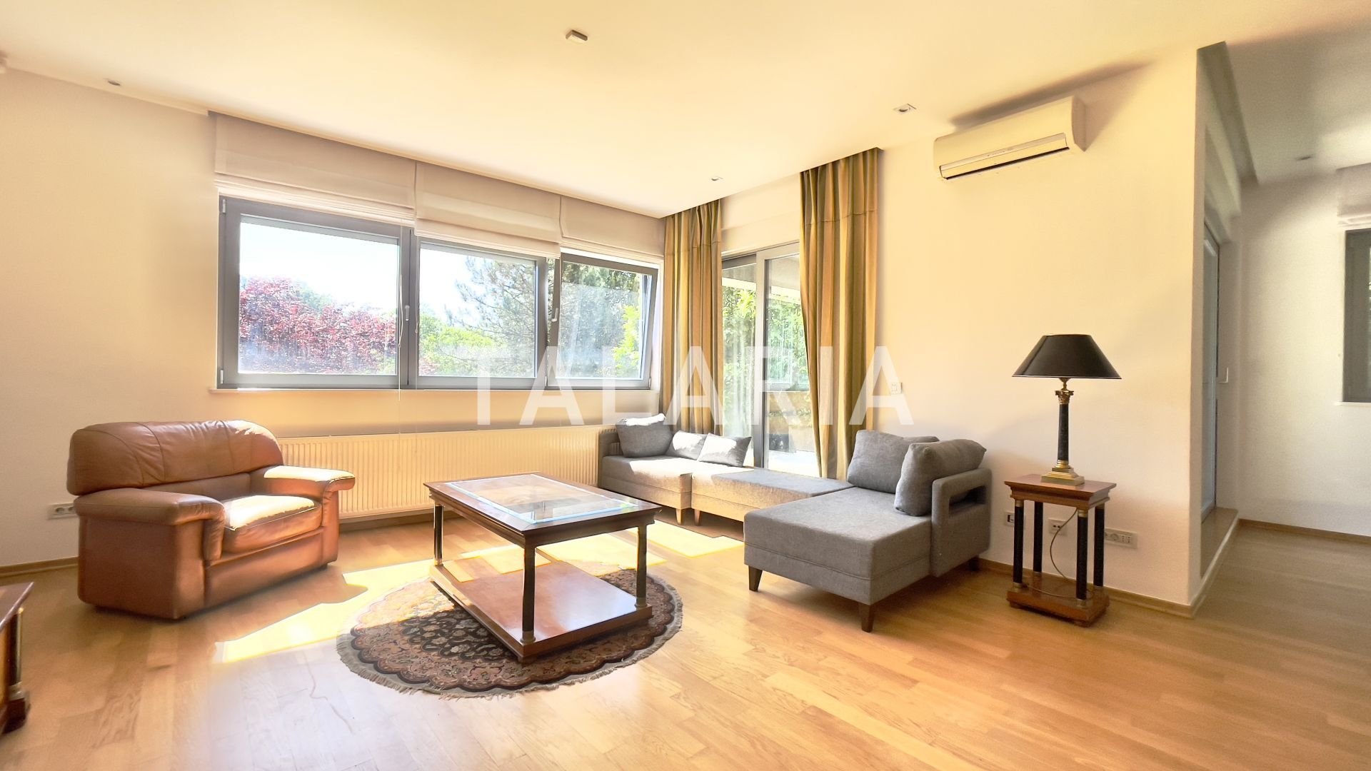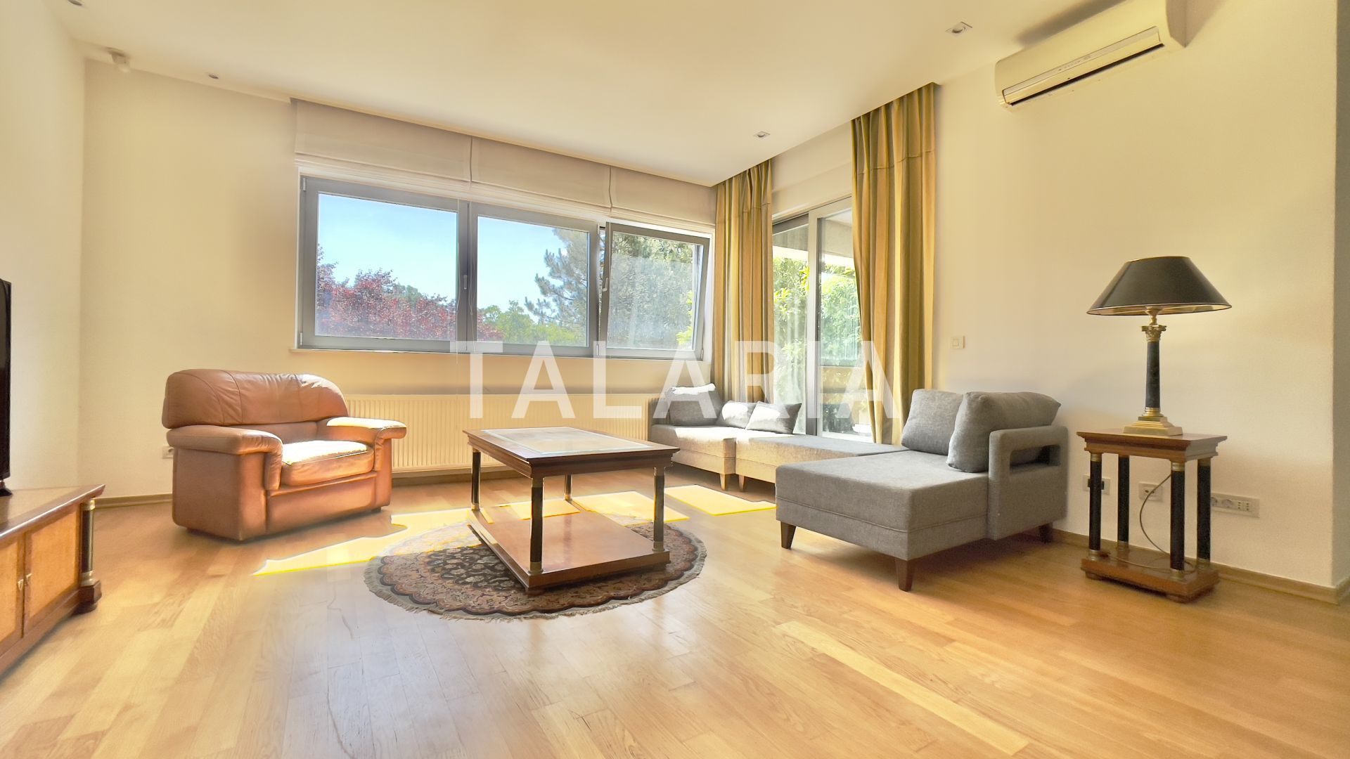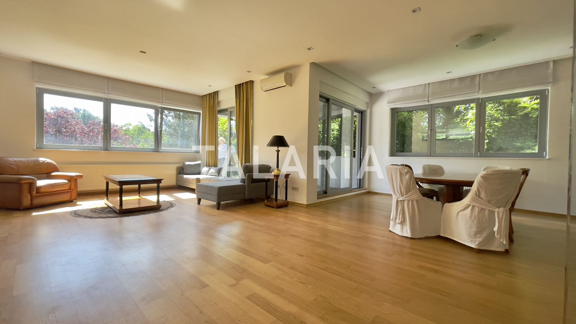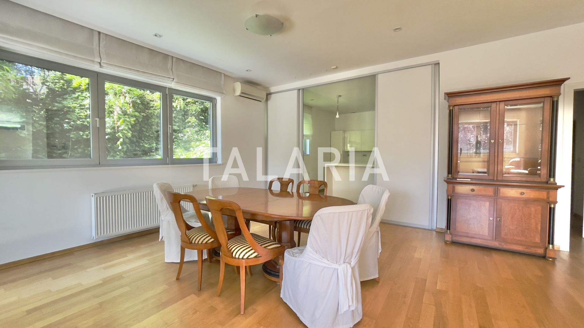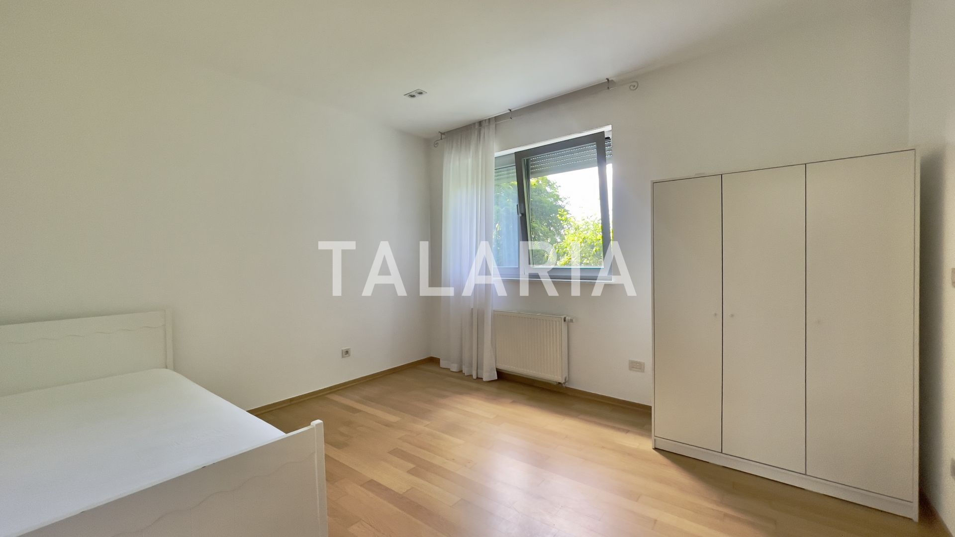 A beautiful two-story apartment in a newer urban villa from 2007 with a garden and a view of the greenery. The apartment is located in a quiet street in Pantovčak, only a 10-minute walk from Britanski trg. On the upper floor of the apartment there are 4 bedrooms, each with its own bathroom (the master bedroom is over 30 square meters). On the lower floor, there is a guest toilet, and a wonderful voluminous living room with kitchen and dining room, which continues to the terrace and garden of 600 m2. Alarm, air conditioning. The apartment has 2 parking spaces in front of the building.