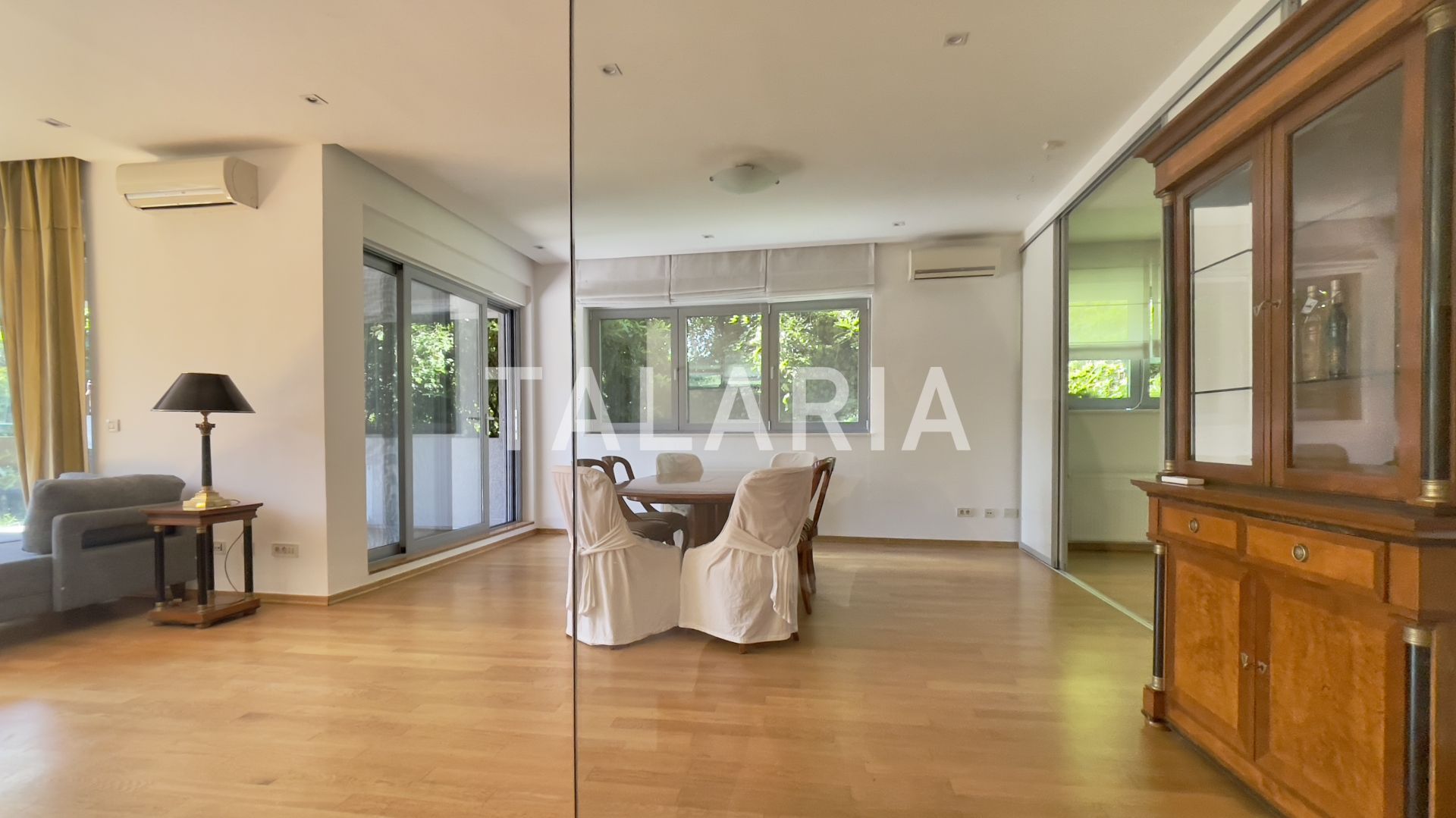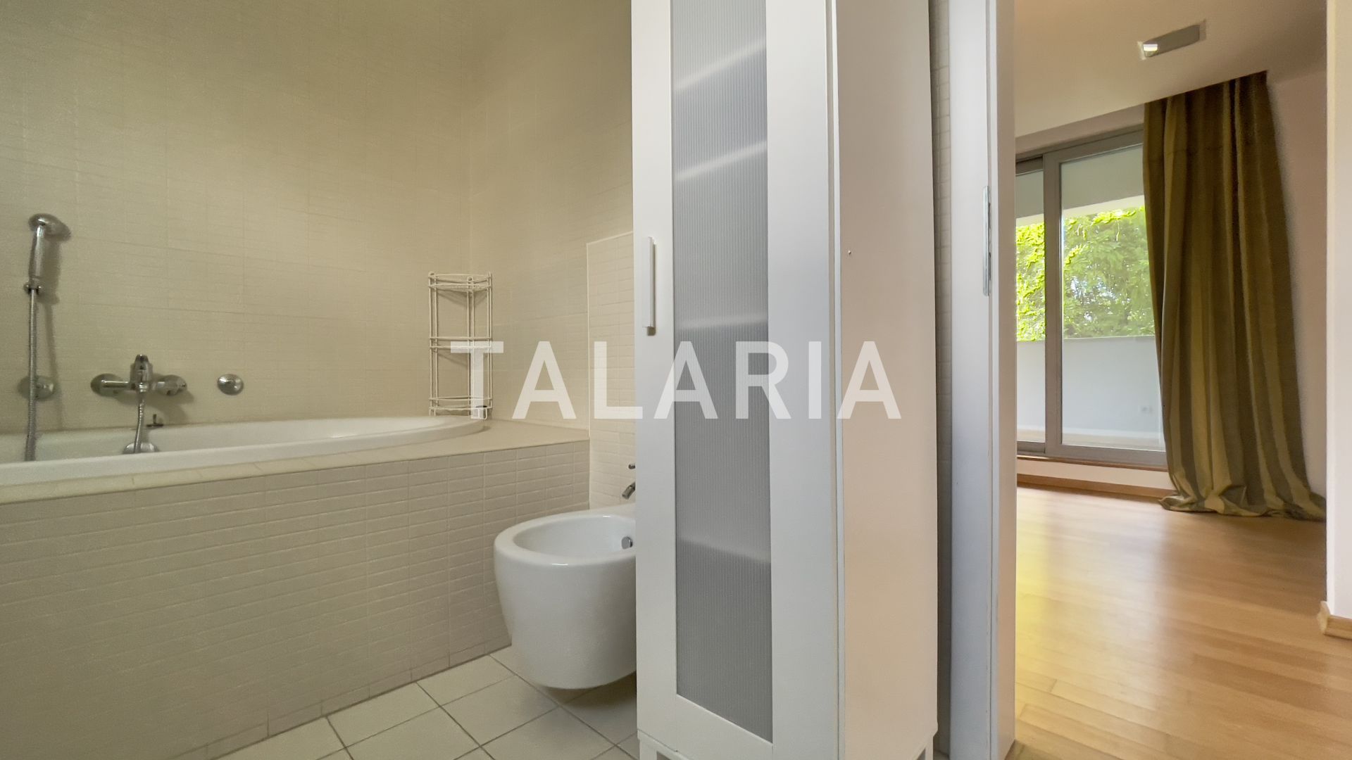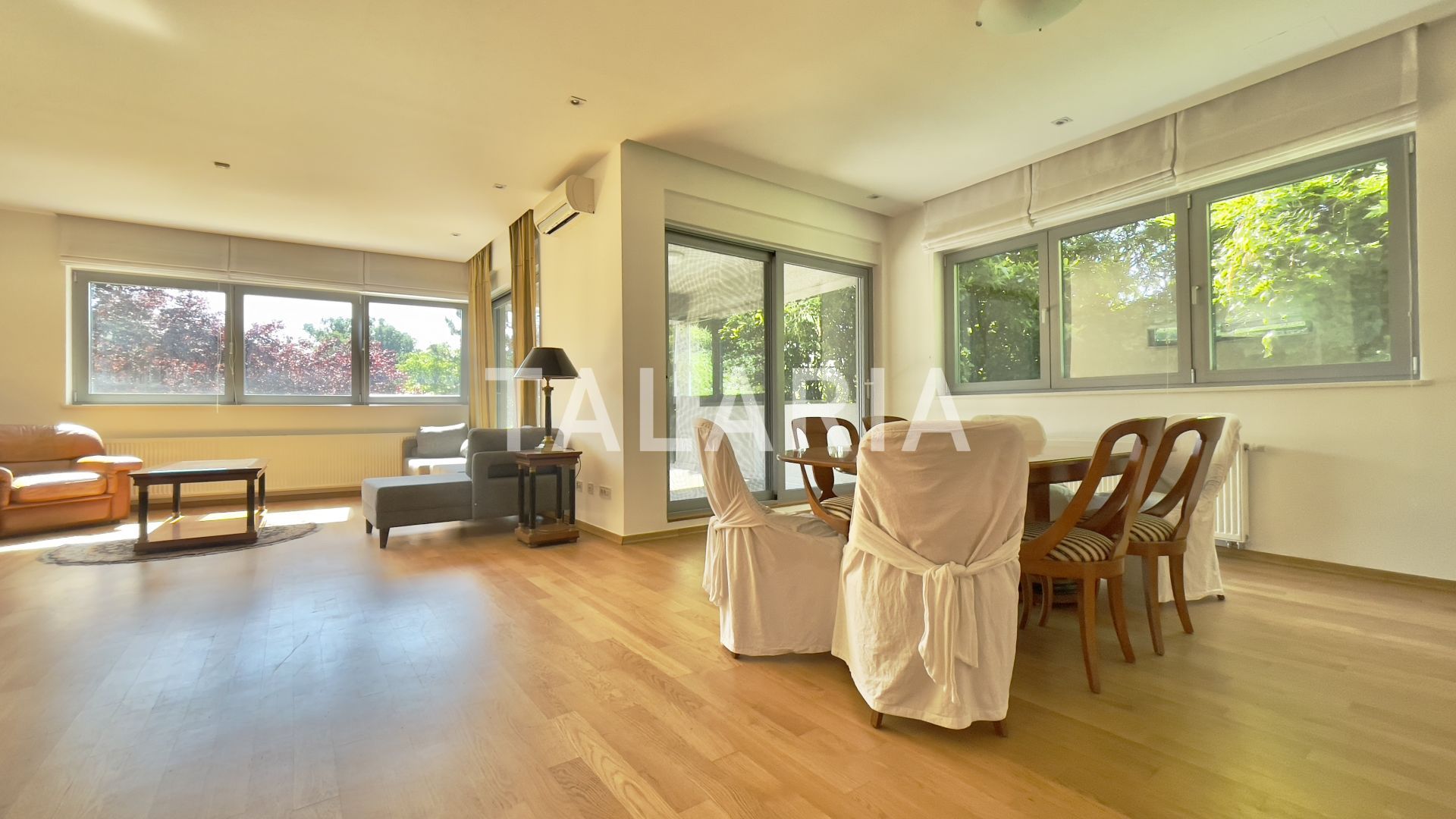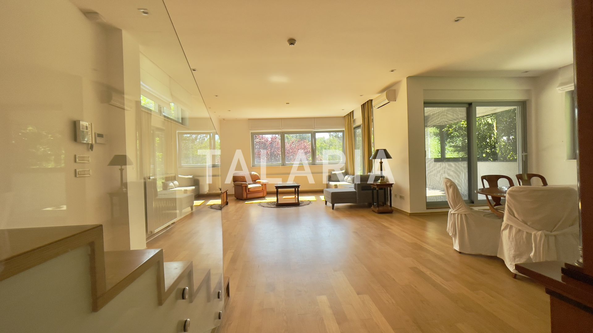A beautiful two-story apartment in a newer urban villa from 2007 with a garden and a view of the greenery. The apartment is located in a quiet street in Pantovčak, only a 10-minute walk from Britanski trg. On the upper floor of the apartment there are 4 bedrooms, each with its own bathroom (the master bedroom is over 30 square meters). On the lower floor, there is a guest toilet, and a wonderful voluminous living room with kitchen and dining room, which continues to the terrace and garden of 600 m2. Alarm, air conditioning. The apartment has 2 parking spaces in front of the building.