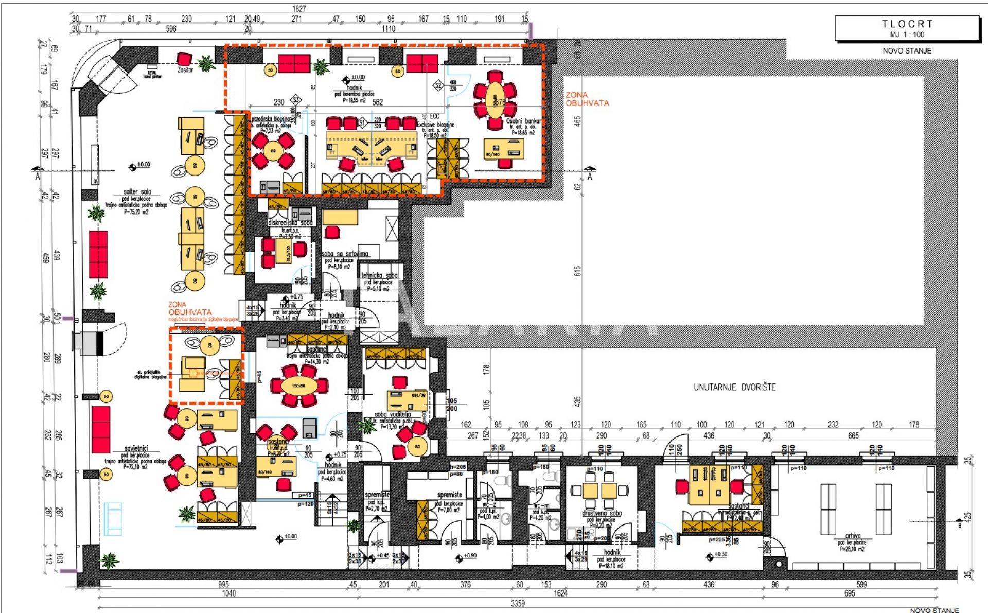 Exceptional, unique and attractive business premises are located in the very heart of Zagreb, opposite the most beautiful and recognizable city park Zrinjevac. It is located on the ground floor of the building, with an imposing corner storefront of 22 m x 16 m that extends to 2 famous streets - Bogovićeva and Praška. In addition to large storefronts and openness towards the beautiful Zrinjevac, additional volume and elegance are created by 4-meter-high ceilings. The ground floor has 370 m2 with direct access from the road, while the basement rooms with windows have 80 m2.
