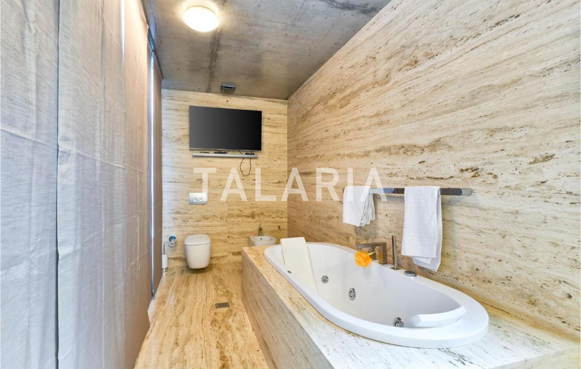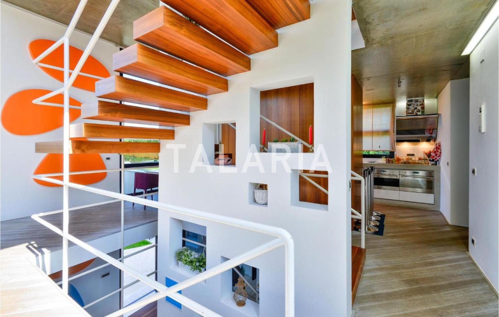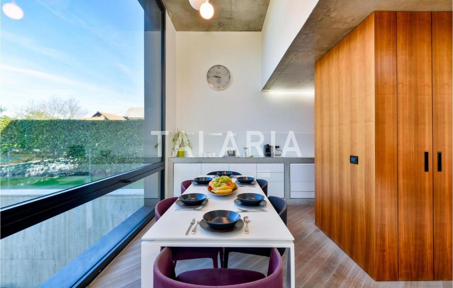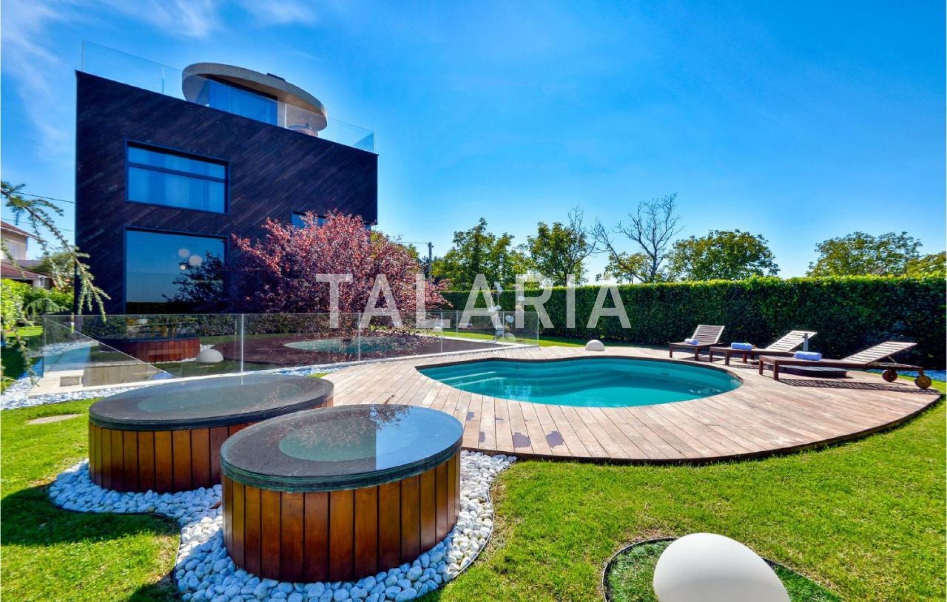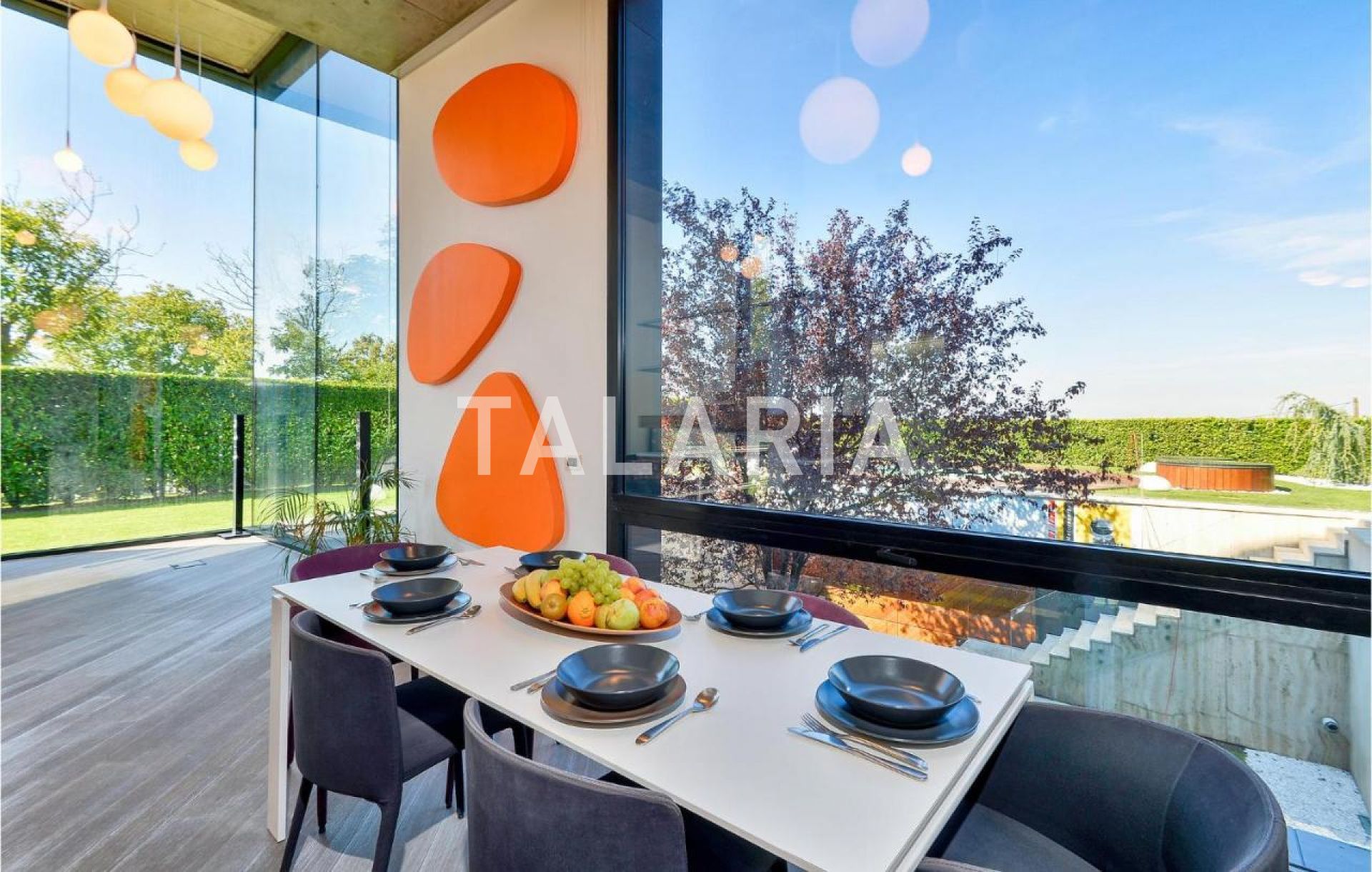 Luxurious, modern house of 273m2 with a swimming pool in Kloštar Ivanić. It is spread over 634m2 of land. It consists of 3 floors, on the 1st floor is: a kitchen with dining room, a study room, a bathroom with a toilet and a sauna, on the 2nd floor: a kitchen with a dining room, a spacious living room and a guest toilet, on the mezzanine floor there is a bedroom and a bathroom with a hydromassage bath, and on the 3rd floor: 2 bedrooms and a bathroom with a toilet. You can also enjoy it on the roof of the house, where there is a large terrace with a beautiful view and a jacuzzi. The house has a garage and a parking space, it is equipped with the highest quality appliances.