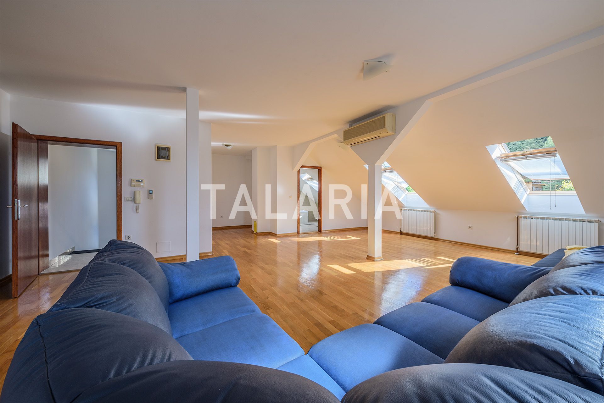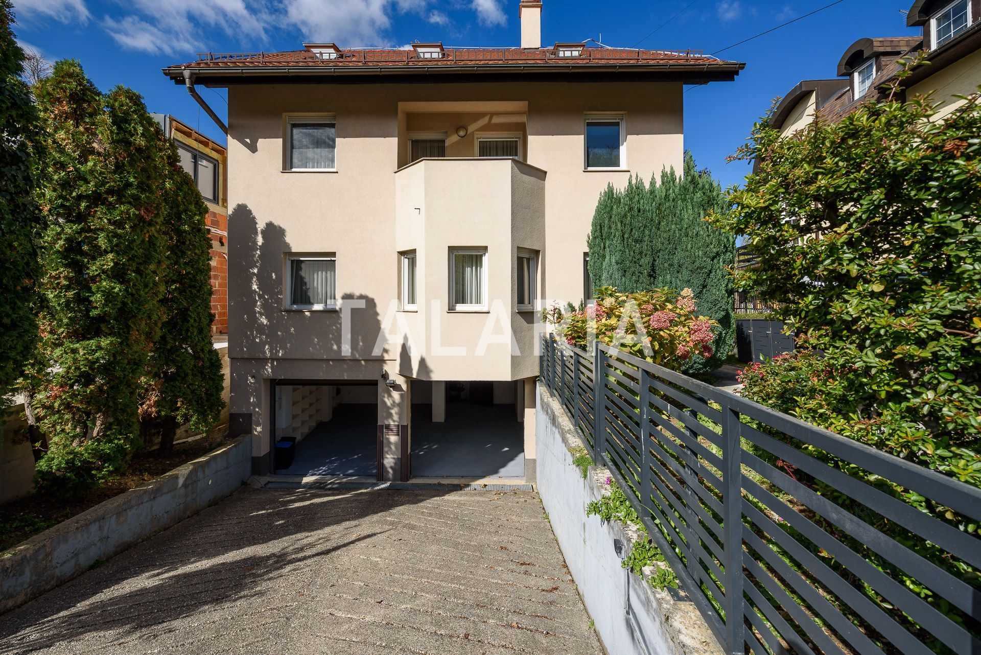 It spreads over 4 floors. In the basement there is: a double garage, a laundry room and a room with access to the garden, ground floor: entrance hall, kitchen with dining room, large living room with access to the terrace and garden, bathroom, upstairs there is a parent's room with its own bathroom and walk-in closet, and access to the balcony, 3 bedrooms (two with a balcony) and a bathroom, in the attic there is a spacious open space area, 2 smaller rooms and a bathroom.