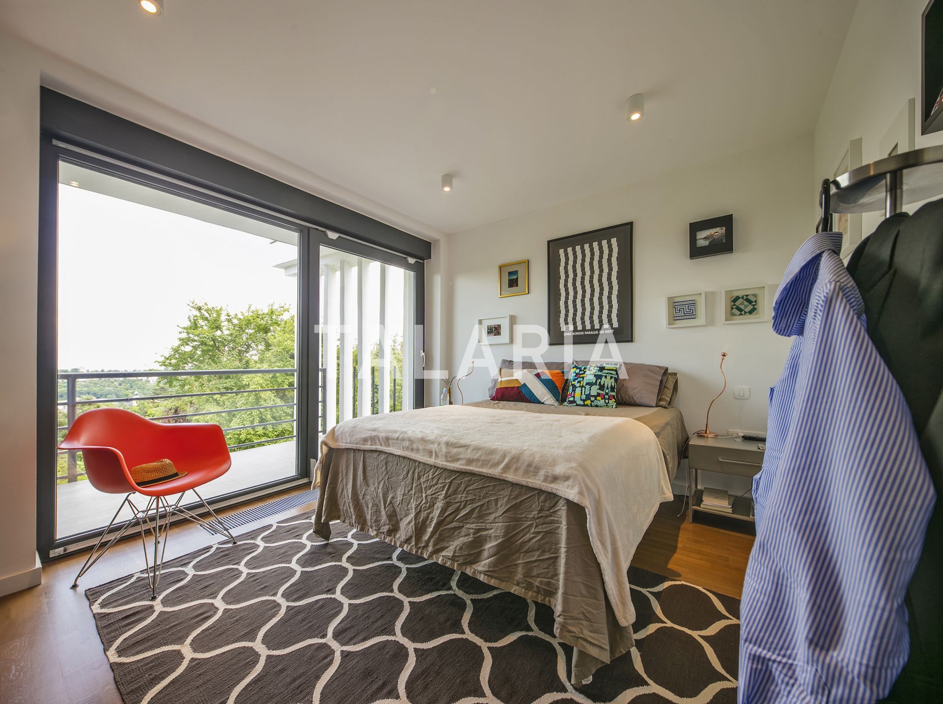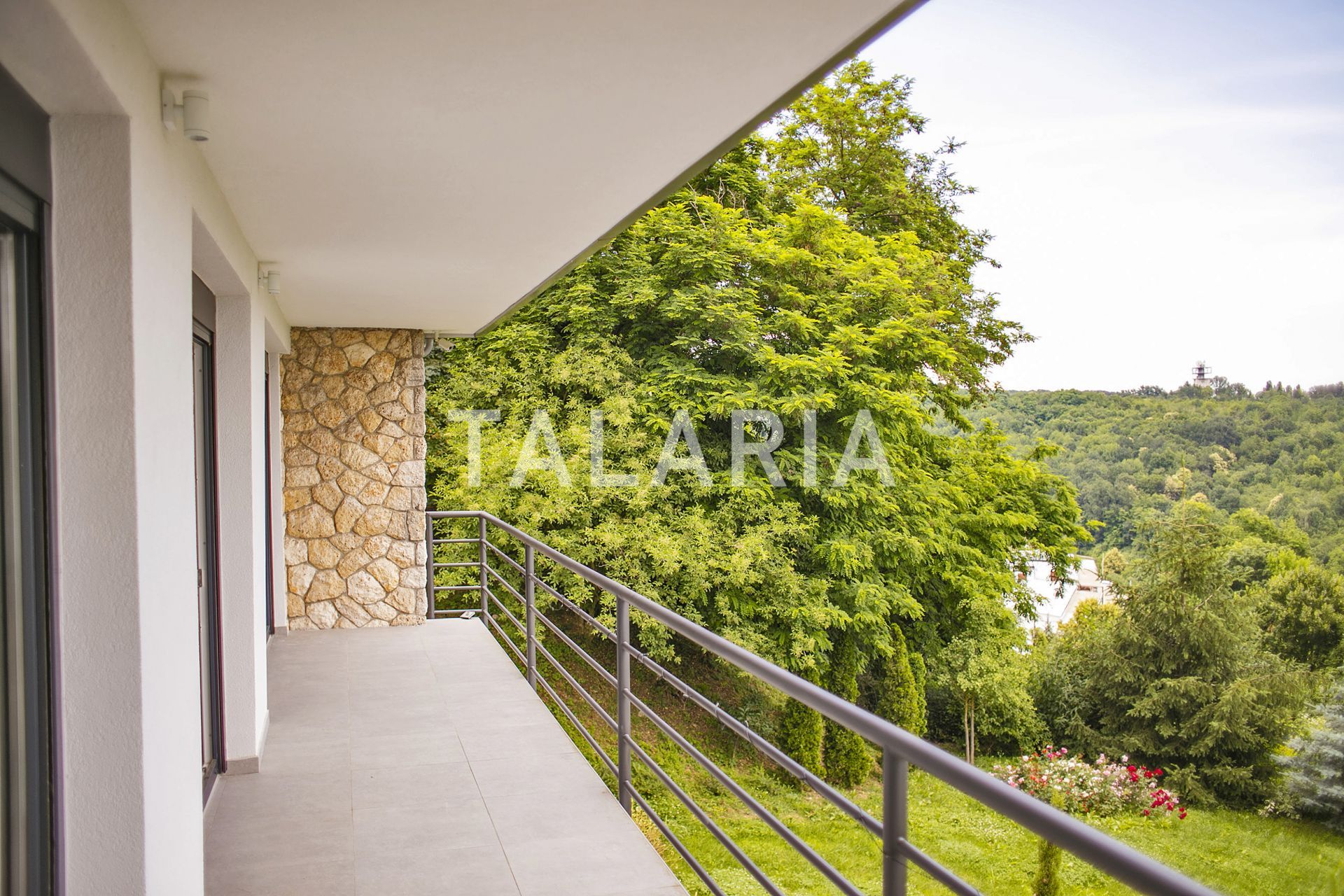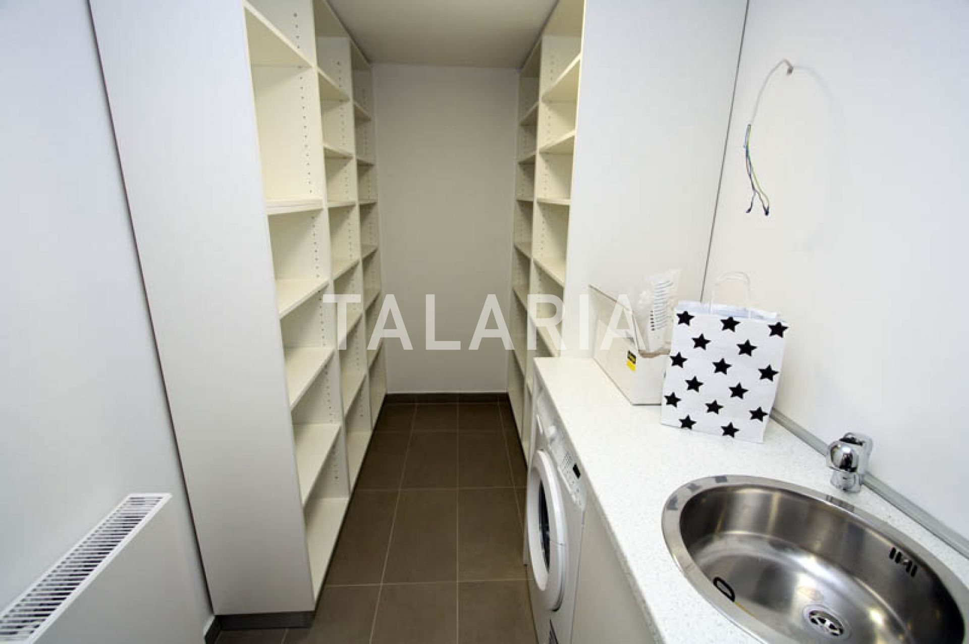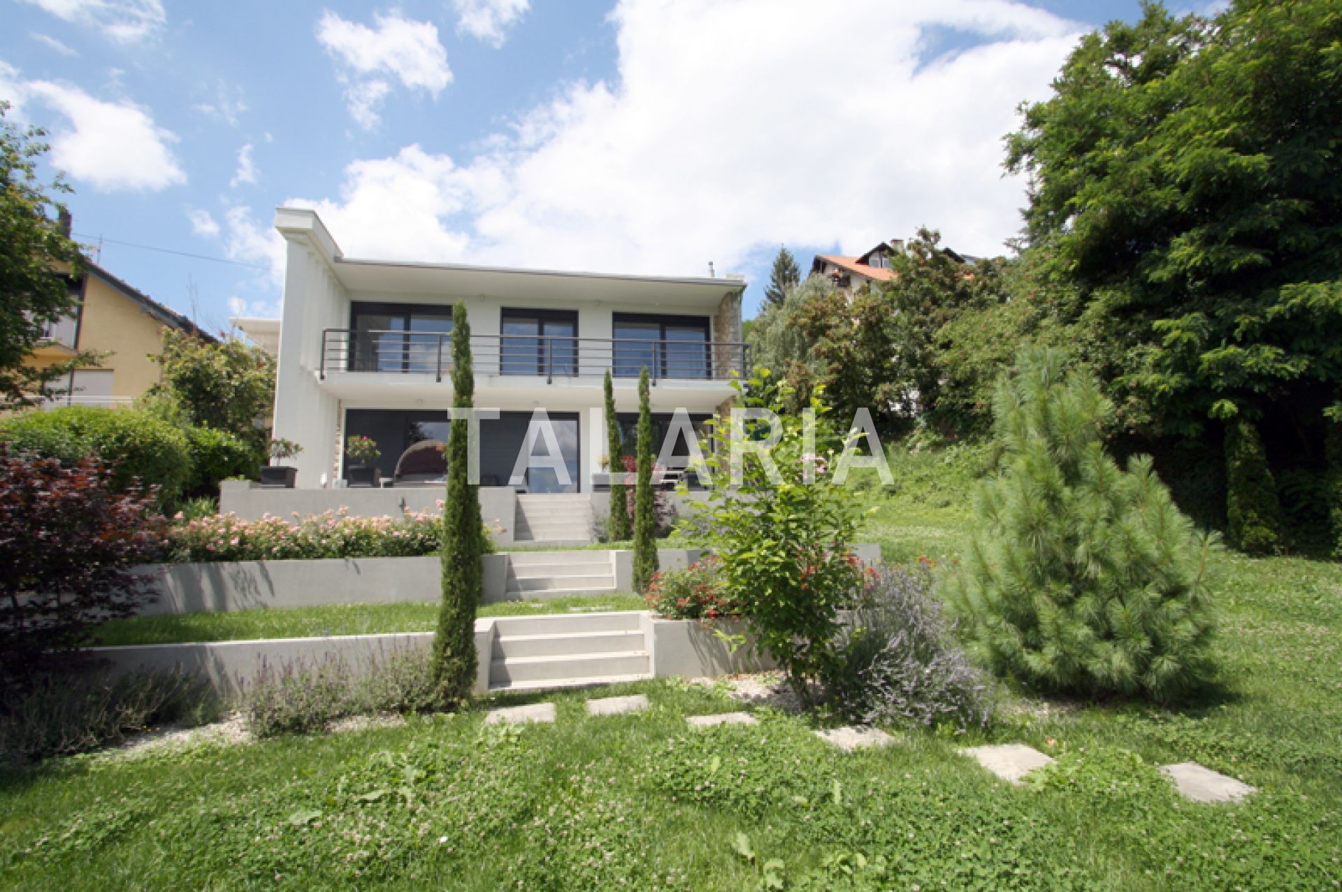 A modern, luxuriously furnished small villa with a beautiful garden is located in a quiet street just 10 minutes from the city and the bustle. The magical, small but rich garden gives it an extra dimension and a relaxing atmosphere. Beautiful family-friendly house, spread over 2 floors. The ground floor consists of entrance hall, magical open space living room with dining area and kitchen, spacious terrace with access to a beautiful garden, guest toilet, gym with jacuzzi and Finnish sauna and laundry room with storage. Upstairs are 3 bedrooms, 2 bathrooms, large covered balcony. Open view. Quiet street. The house has outdoor parking and a large garage with direct entrance to the house. It is rented unfurnished, for a longer period of time.