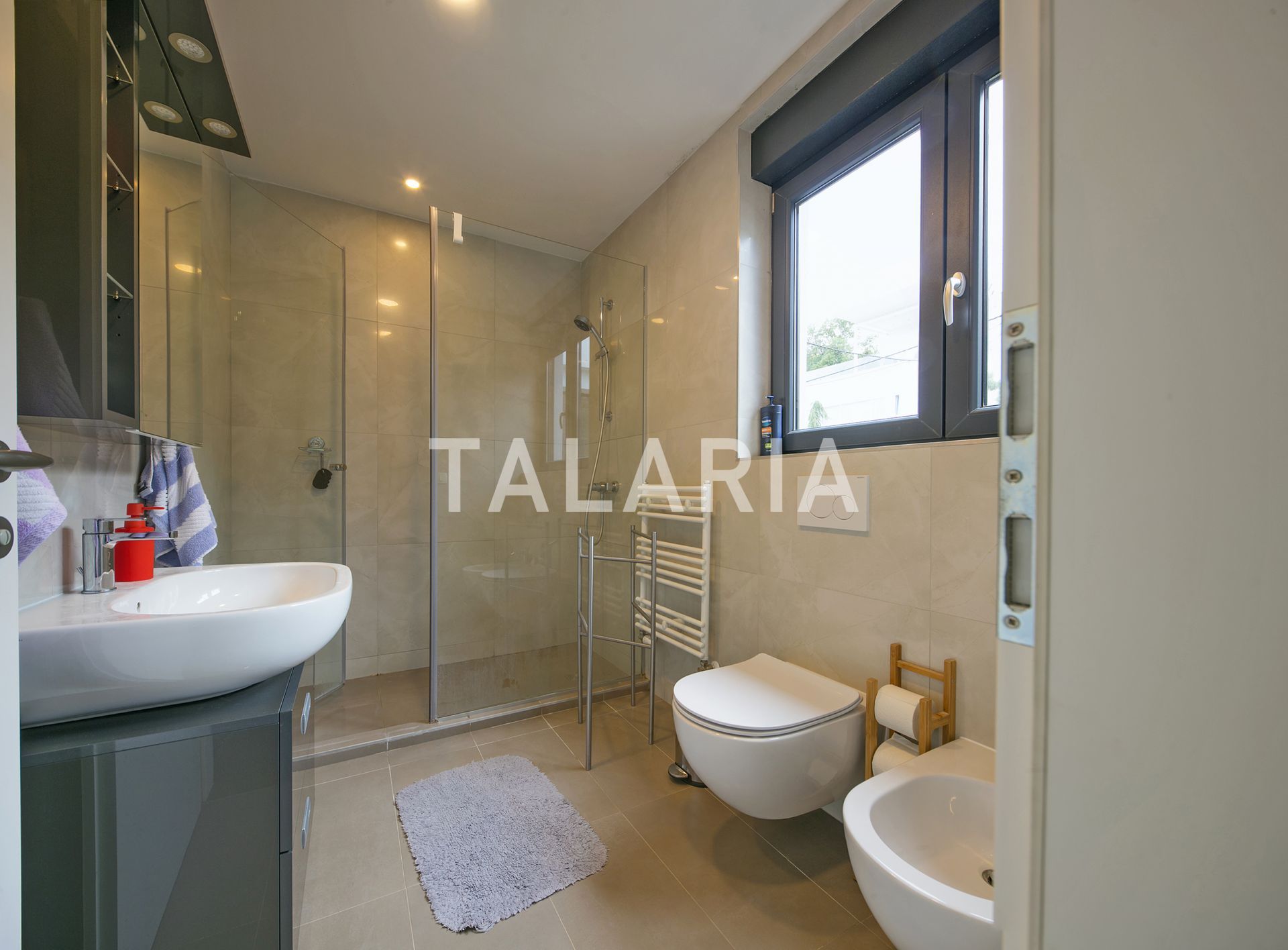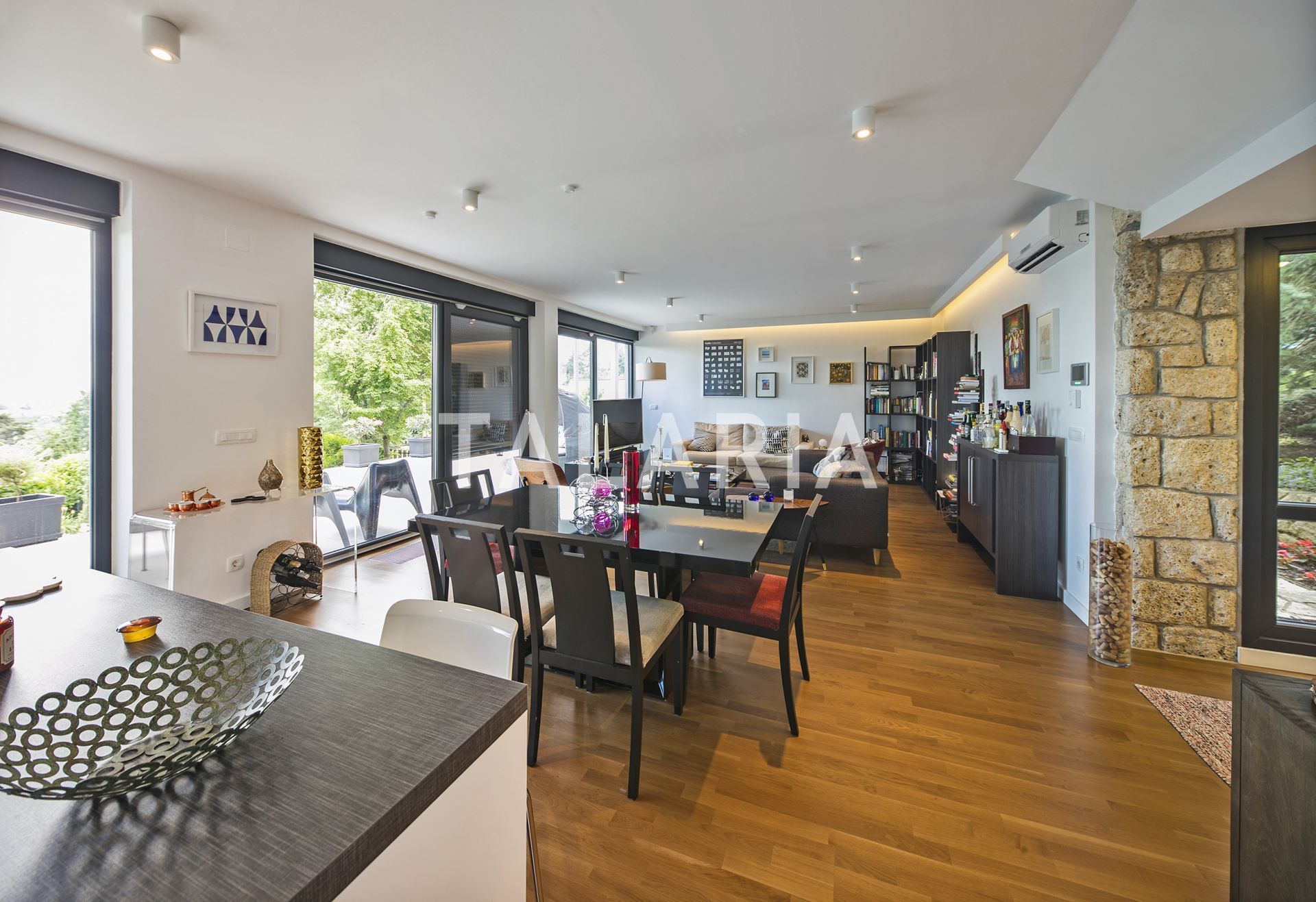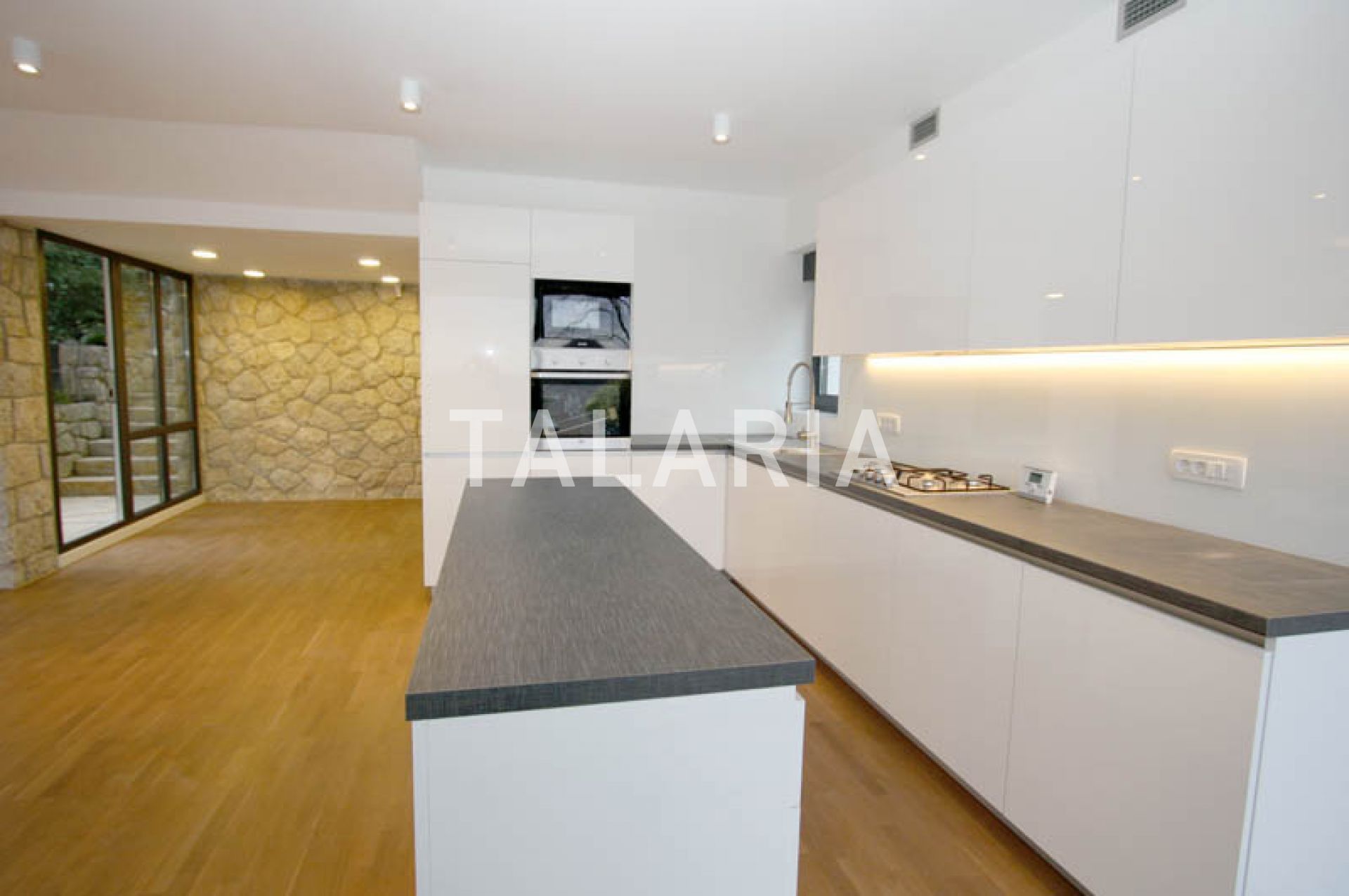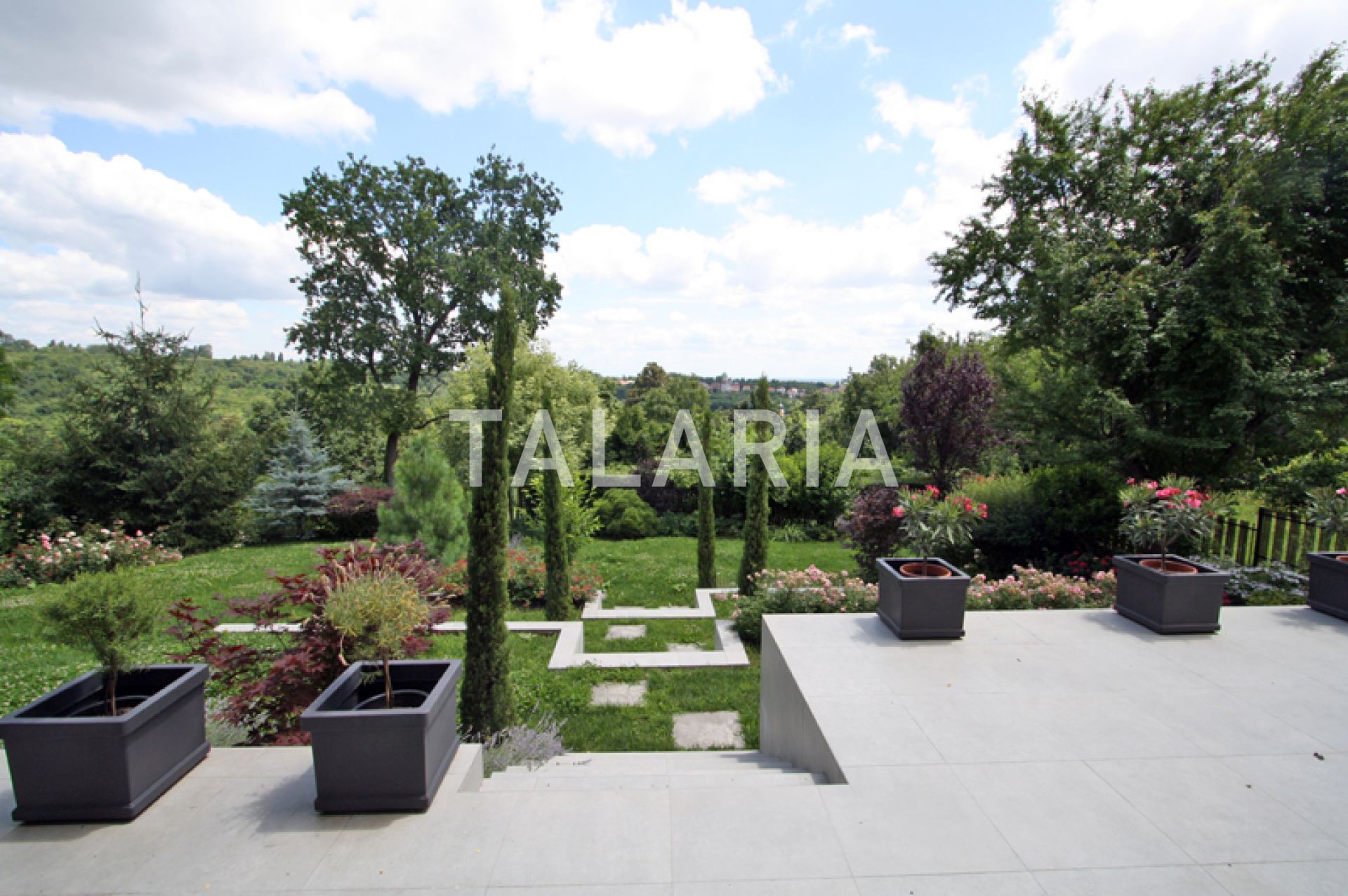 A modern, luxuriously furnished small villa with a beautiful garden is located in a quiet street just 10 minutes from the city and the bustle. The magical, small but rich garden gives it an extra dimension and a relaxing atmosphere. Beautiful family-friendly house, spread over 2 floors. The ground floor consists of entrance hall, magical open space living room with dining area and kitchen, spacious terrace with access to a beautiful garden, guest toilet, gym with jacuzzi and Finnish sauna and laundry room with storage. Upstairs are 3 bedrooms, 2 bathrooms, large covered balcony. Open view. Quiet street. The house has outdoor parking and a large garage with direct entrance to the house. It is rented unfurnished, for a longer period of time.