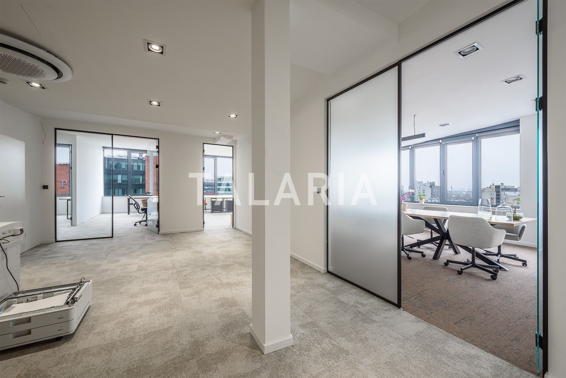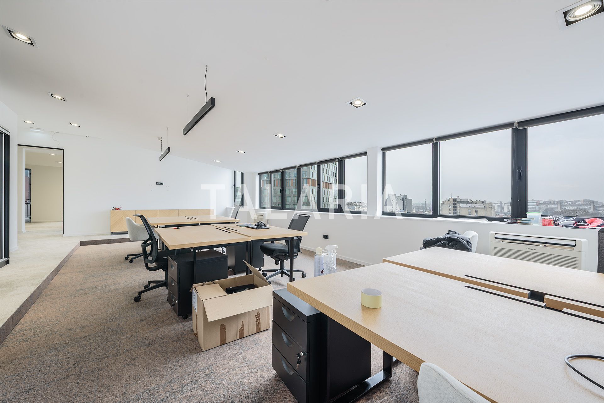 Nalazi se na 7. katu zgrade, ima velike prozore s otvorenim urbanim pogledom na poslovnu zonu. Okrenut je na 3 strane svijeta te cijeli dan obiluje svjetlom.