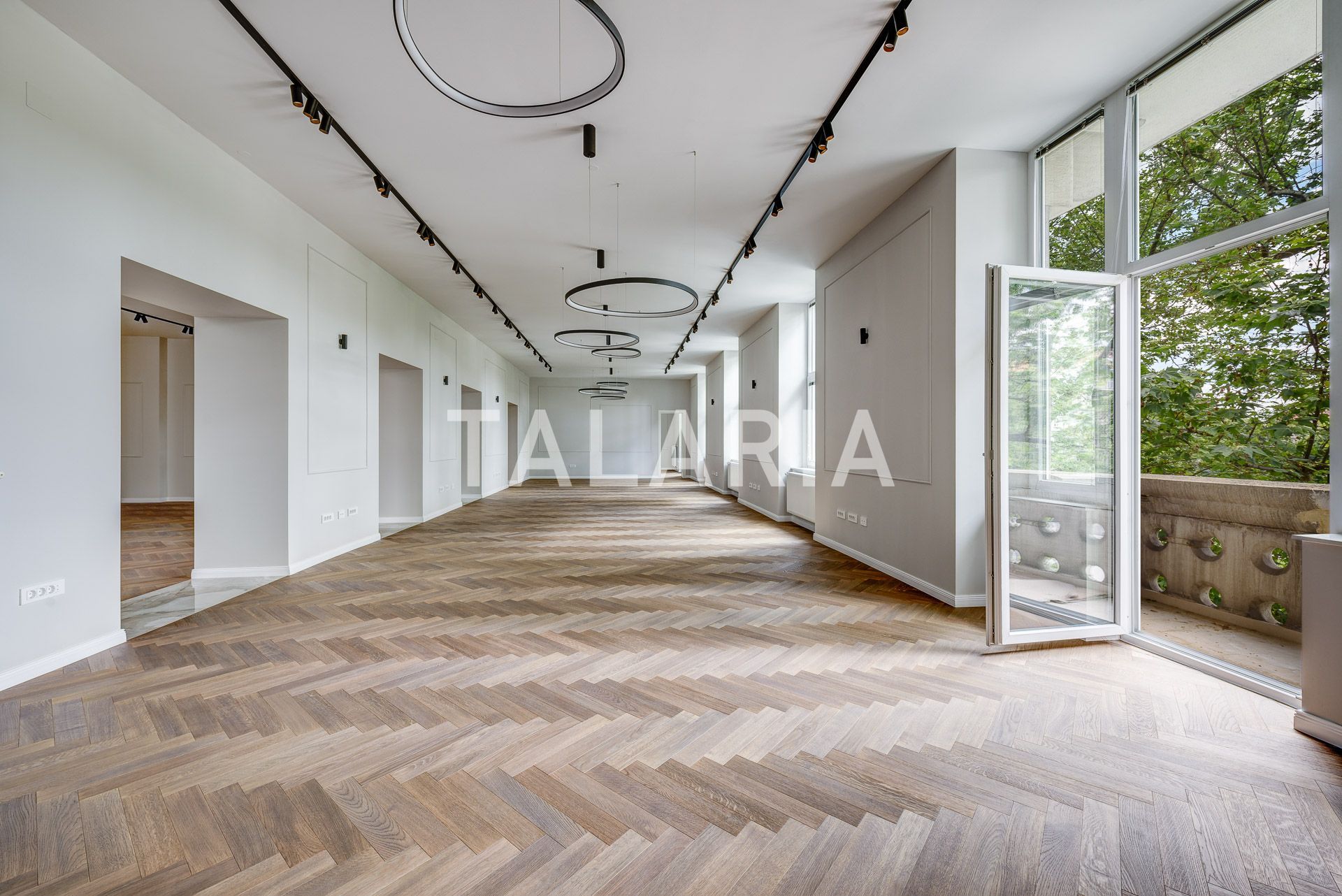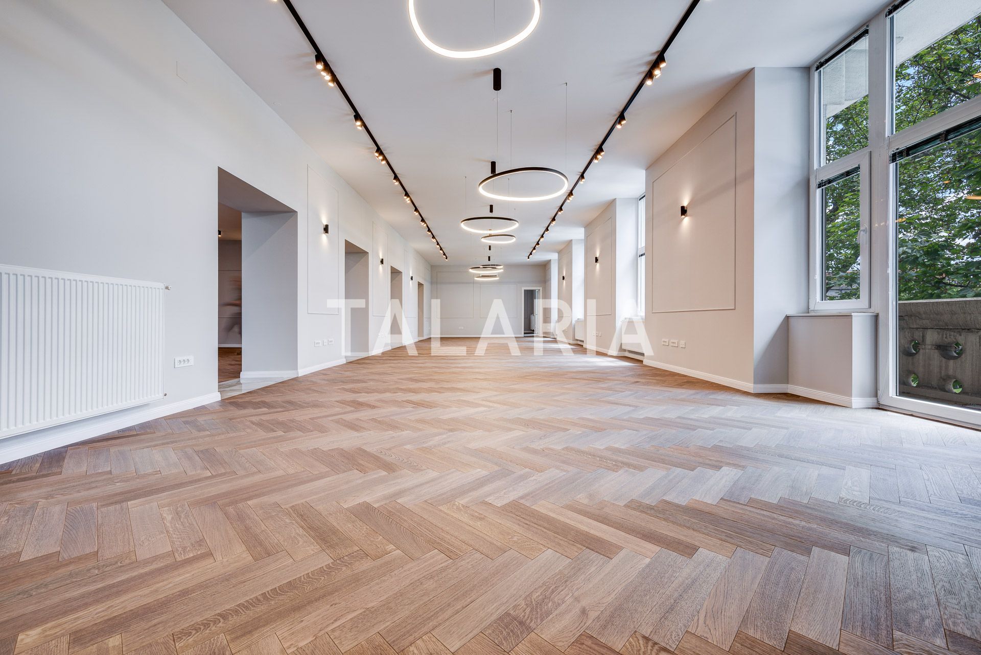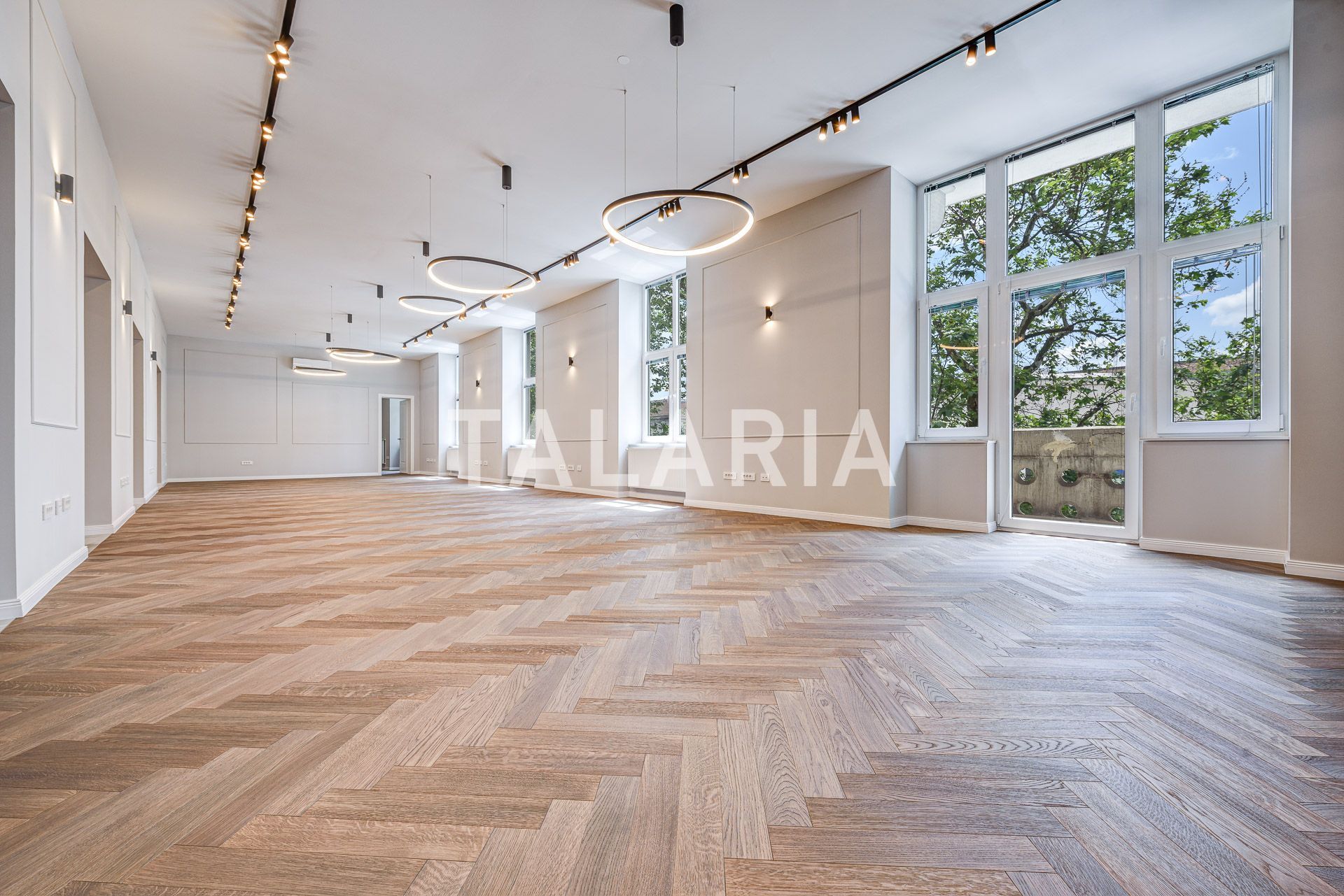 Izvanredan prostor u centru grada, nalazi se na 1.katu u otmjenoj zgradi s prekrasnim pogledom. Sastoji se od prostranog ulaznog hodnika, 7 soba, kuhinje s blagavaonom, 3 kupaone, gostinjskog toaleta. Prostor je vrhunski uređen i opremljen najfinijim materijalima. Osigurano jedno parkirno mjesto. Cijena je 16eur/m2 + PDV.