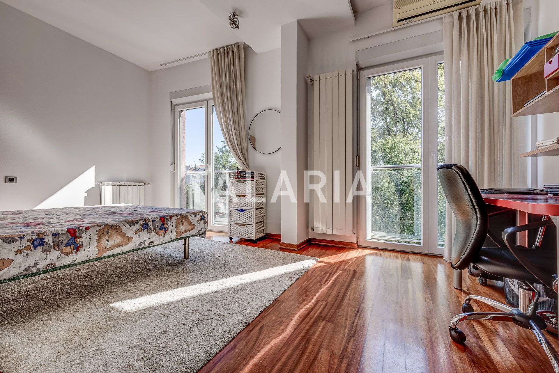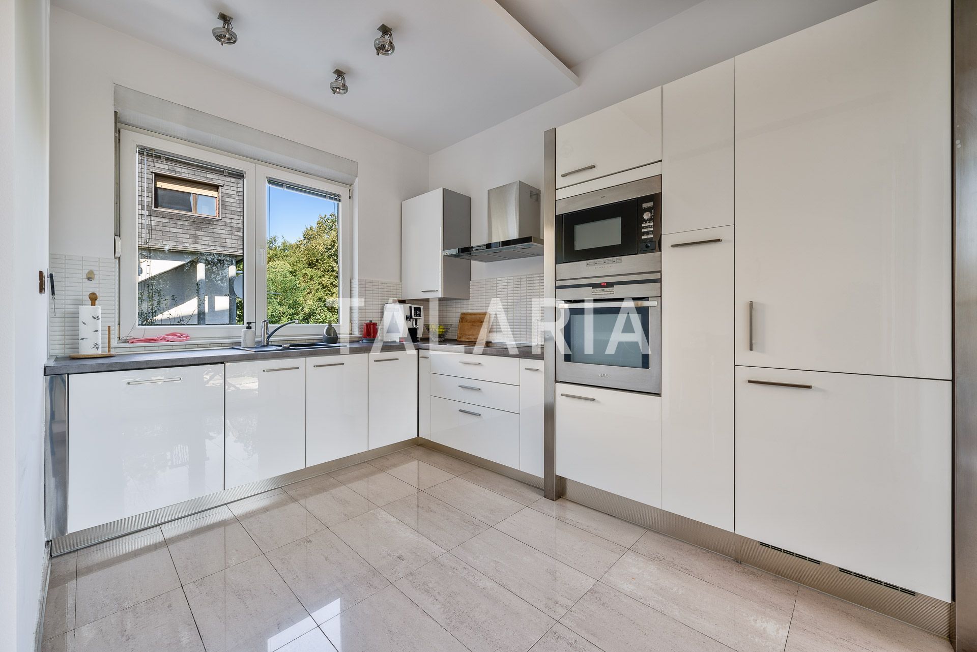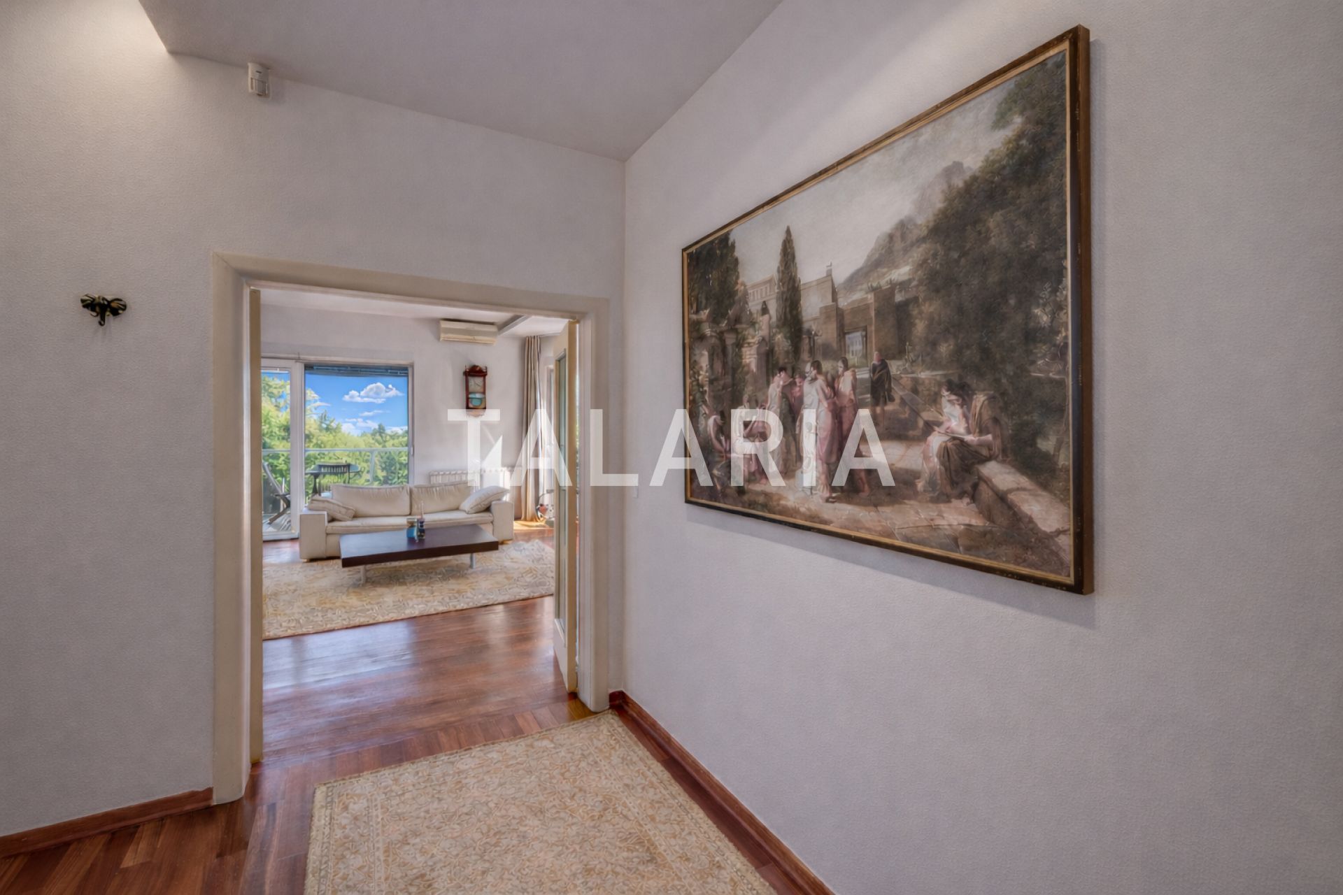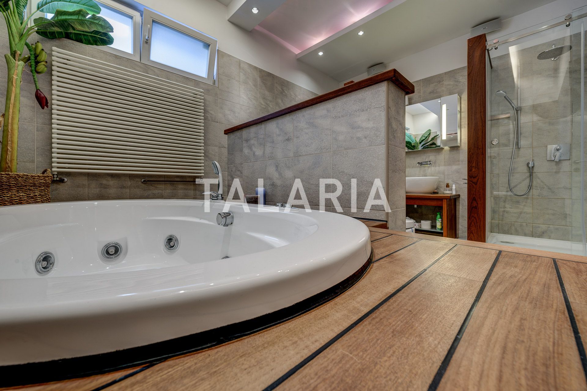Luksuzan 4-sobni stan okružen zelenilom, sastoji se od prostranog dnevnog boravka sa blagovaonom/kuhinjom i izlazom na terasu (10m2), 3 spavaće sobe, garderobe, kupaonice i gostinjskog WC-a. Opremljen visoko kvalitetnim materijalima, klimatiziran, alarmni sustav, električni podizači roleta, podno grijanje (kupaonica), video portafon, vinski hladnjak, jacuzzi kada, vrhunska HI-FI tehnika. Stan ima dvoetažnu garažu za 2 automobila.