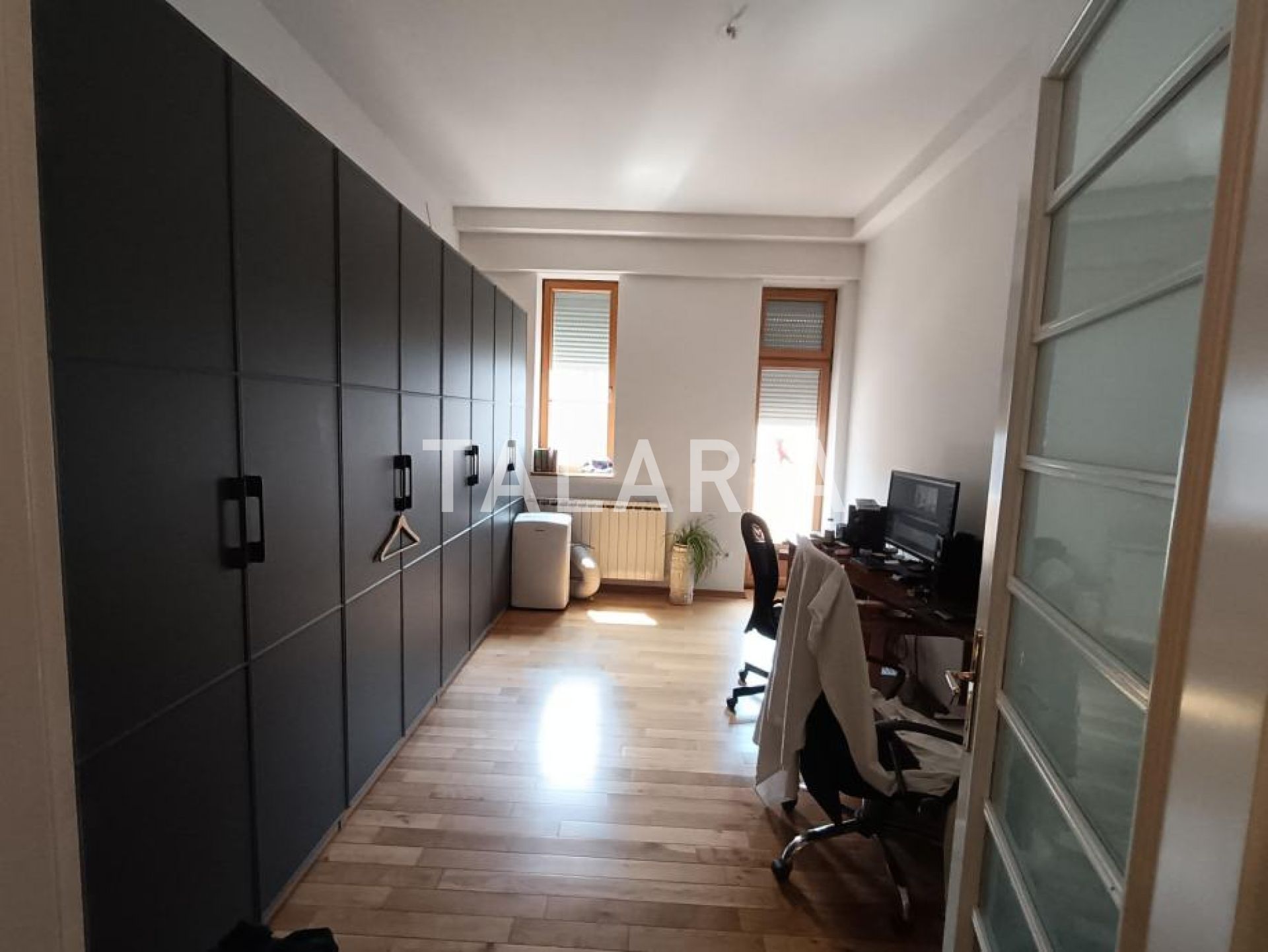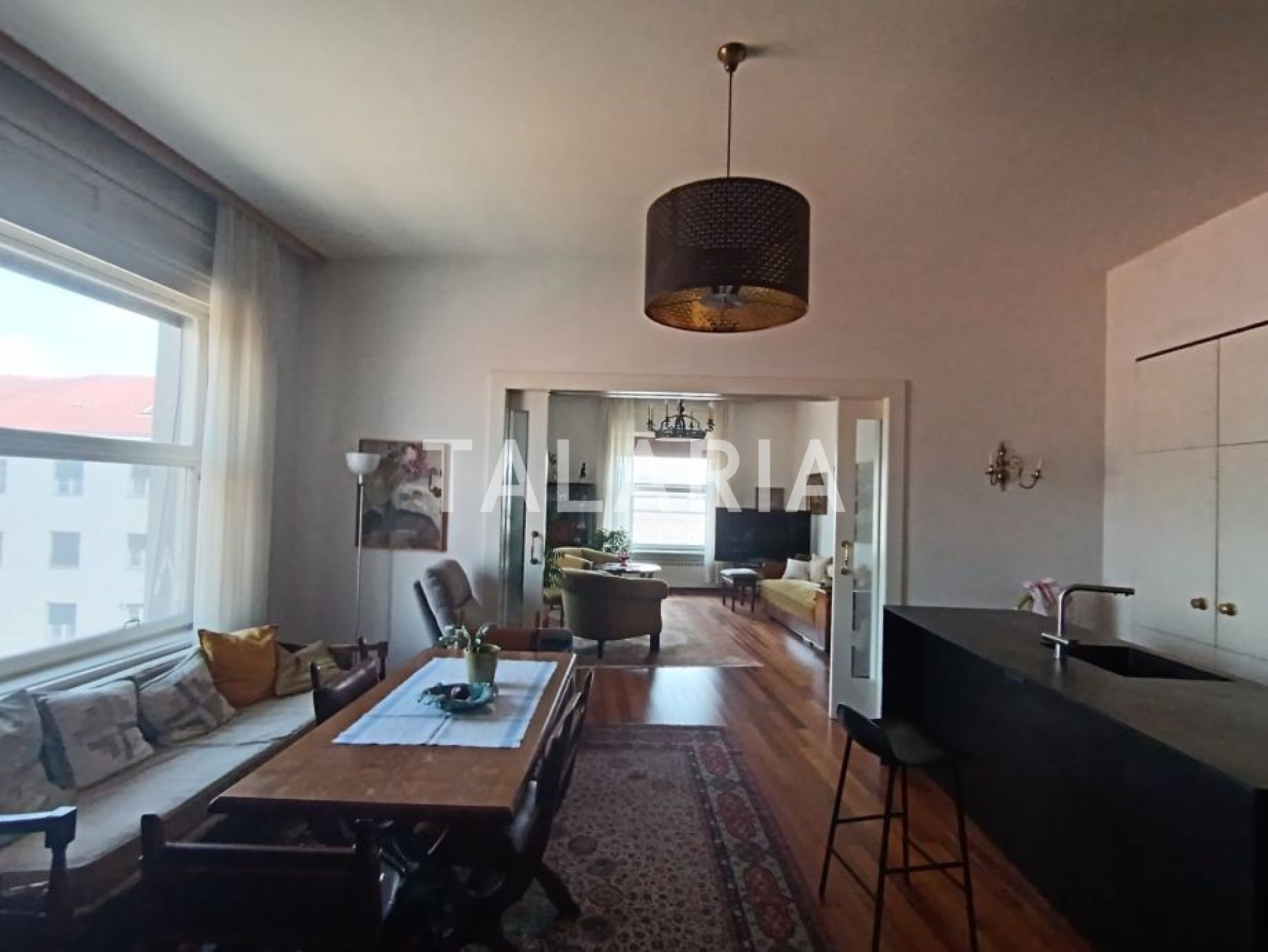 Prostrani 4s stan stambene površine 152m2 na 4.katu kvalitetne armirano-betonske zgrade s liftom, visoki stropovi (3,20m2), obilje prirodnog svjetla i klasični šarm gradskog stana s potencijalom za luksuzno uređenje.