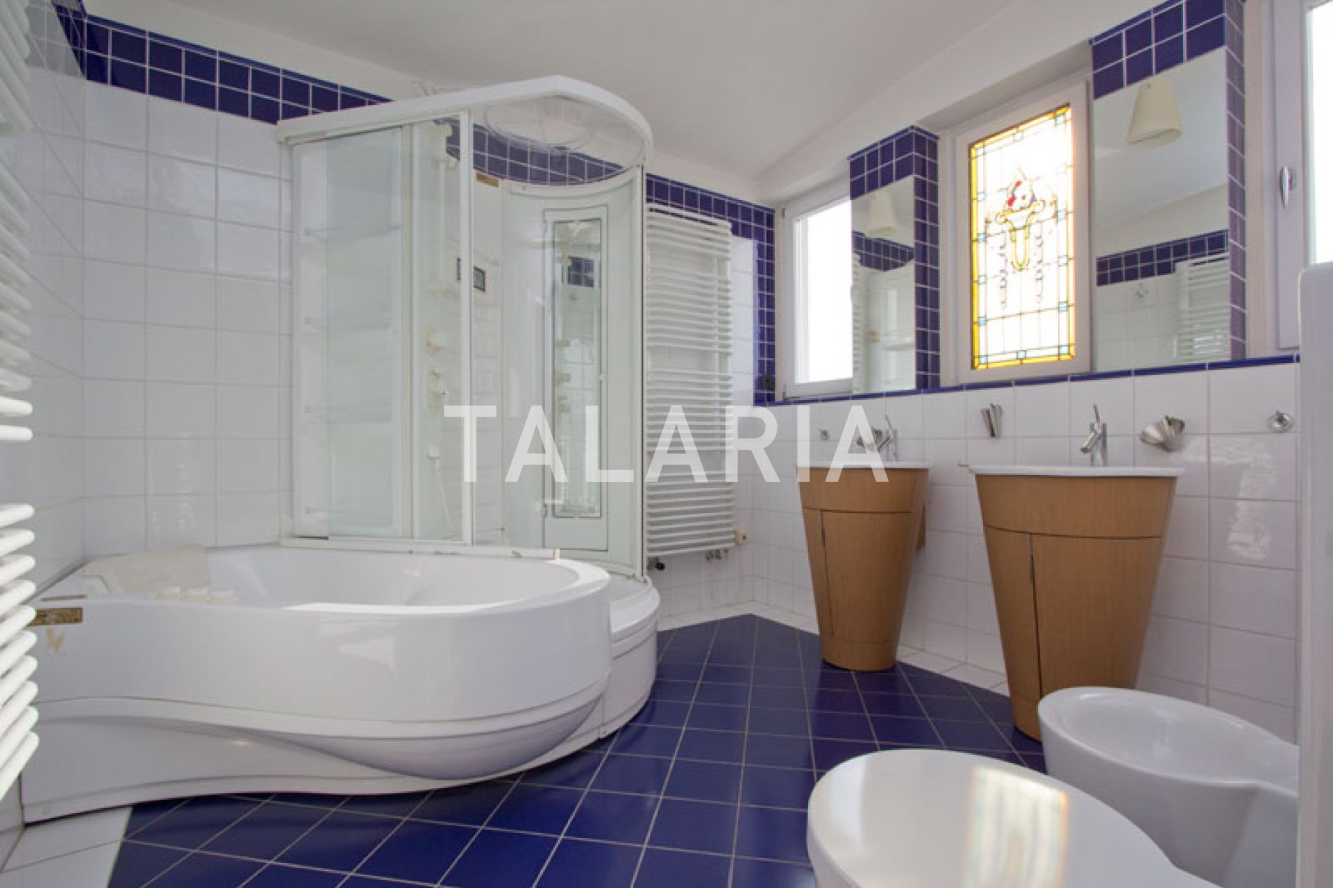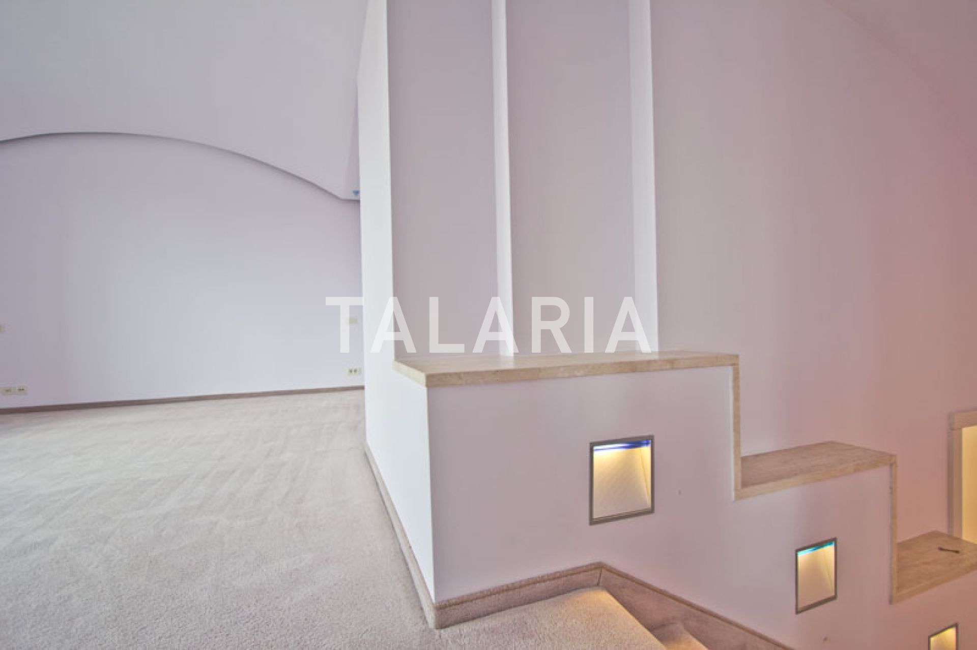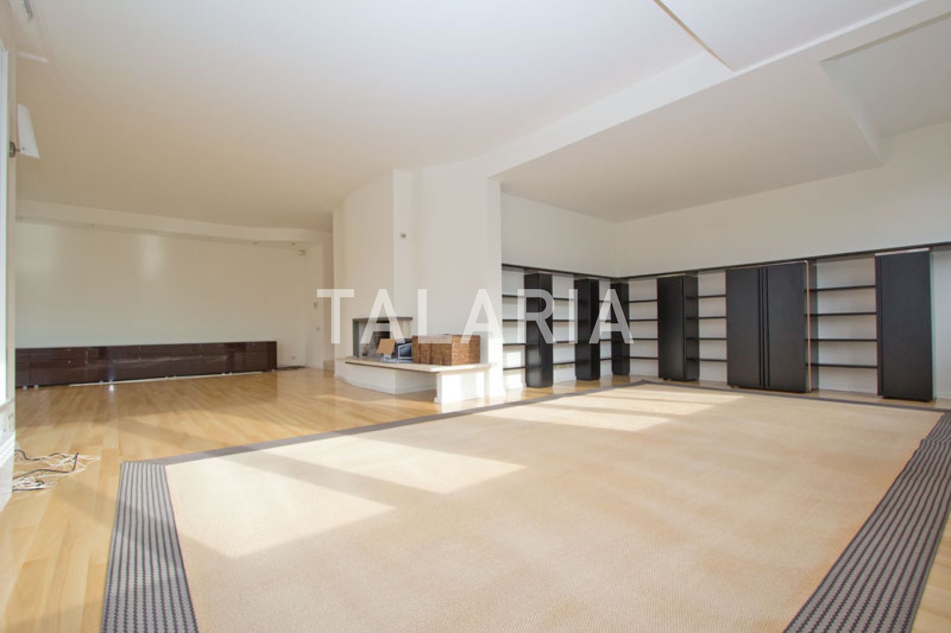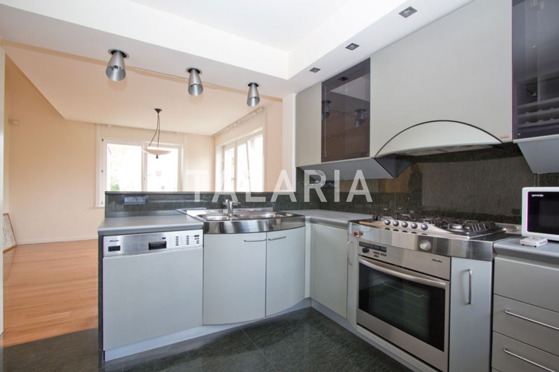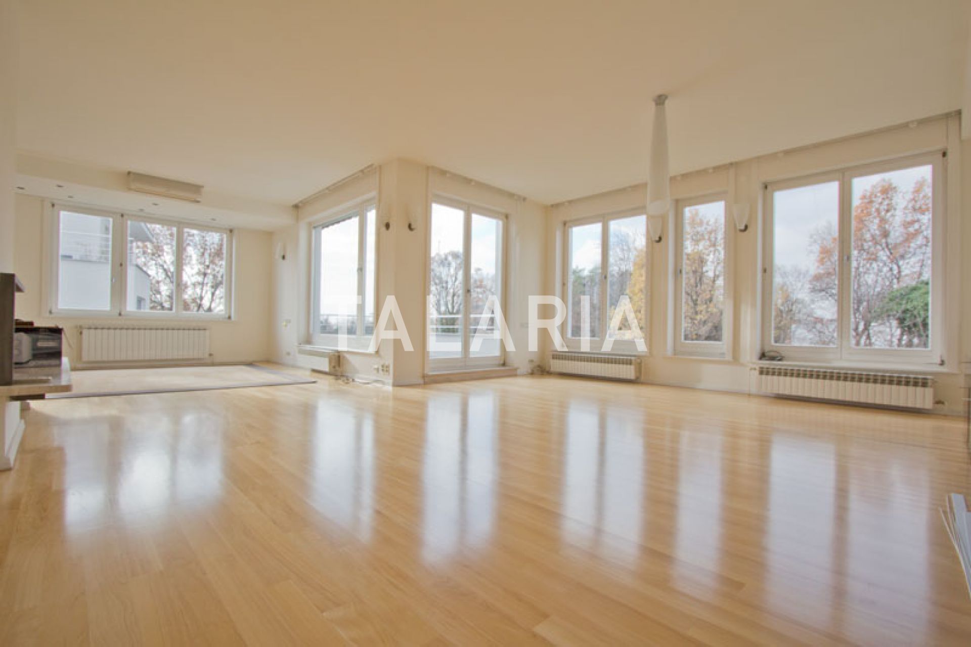 Genijalan stan u otmjenoj zgradi na otmjenoj adresi! Stan je tlocrtno razigran kroz 3 poluetaže a sastoji se od nivoa na kojem su ulazni hol, kuhinja, gostinjski WC, 2 spavaće sobe i kupaona, te dvije poluetaže od samo 5-10 stepenica visinske razlike. Na poluetaži iznad ulaza je velika roditeljska soba sa velikom garderobom i kupaonom te terasom; na poluetaži ispod ulaza je raskošan, ogroman dnevni boravak s kaminom te izlazom na terasu koja gleda na mirnu dvorišnu stranu prema šumi. Cijeli boravak je u velikim prozorima i stijenama koje se otvaraju prema zelenilu. Stanu pripada garaža i jedno parkirno mjesto. AGENCIJSKA PROVIZIJA JEDNA MJESEČNA NAJAMNINA +PDV.