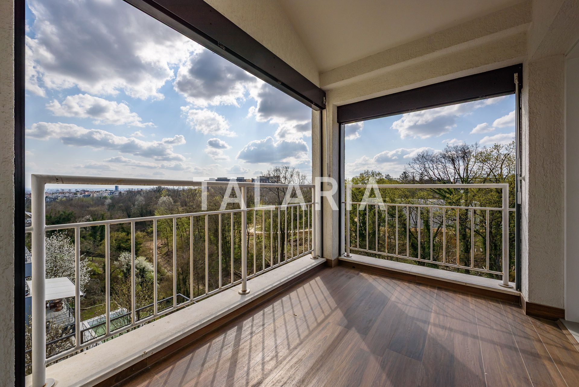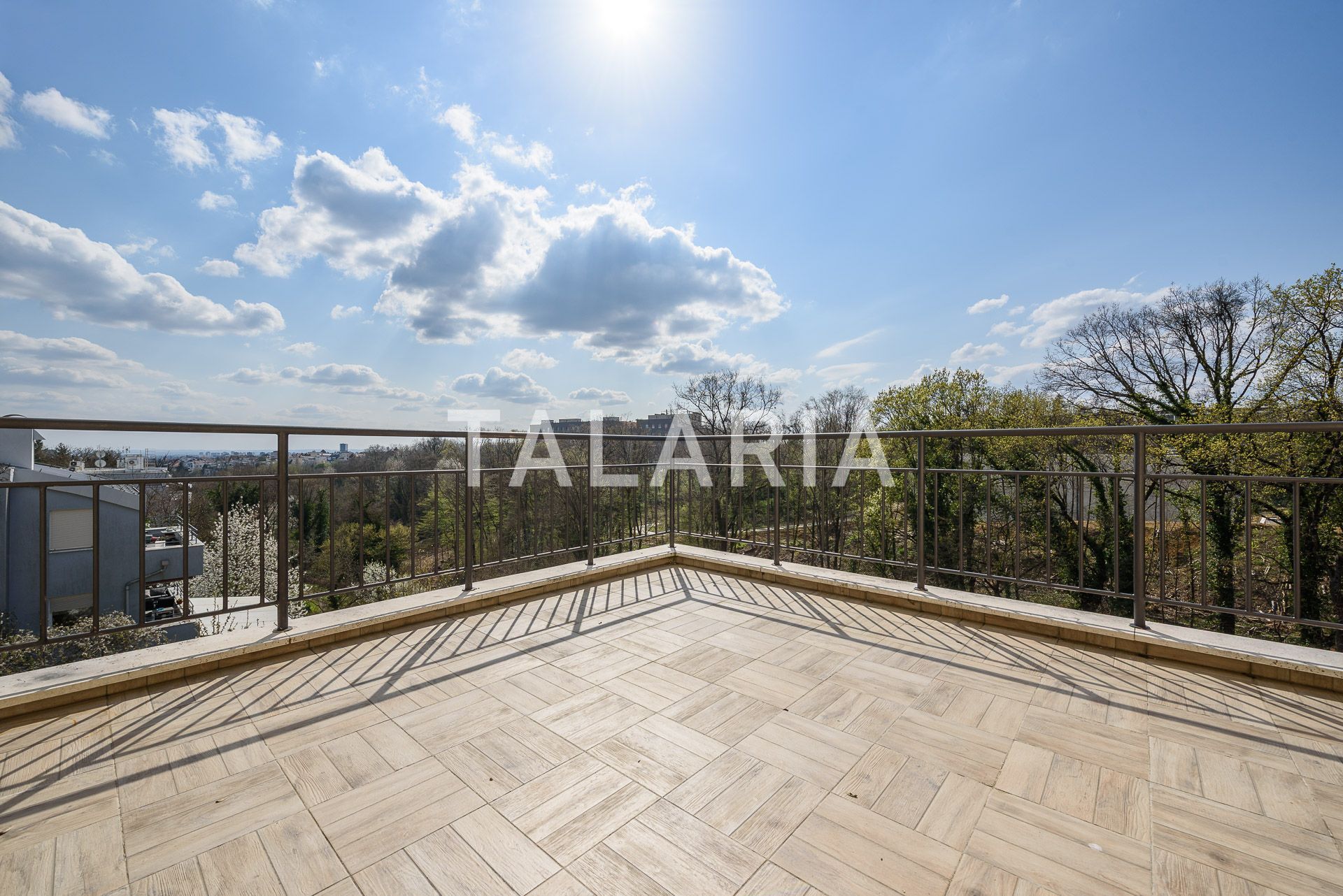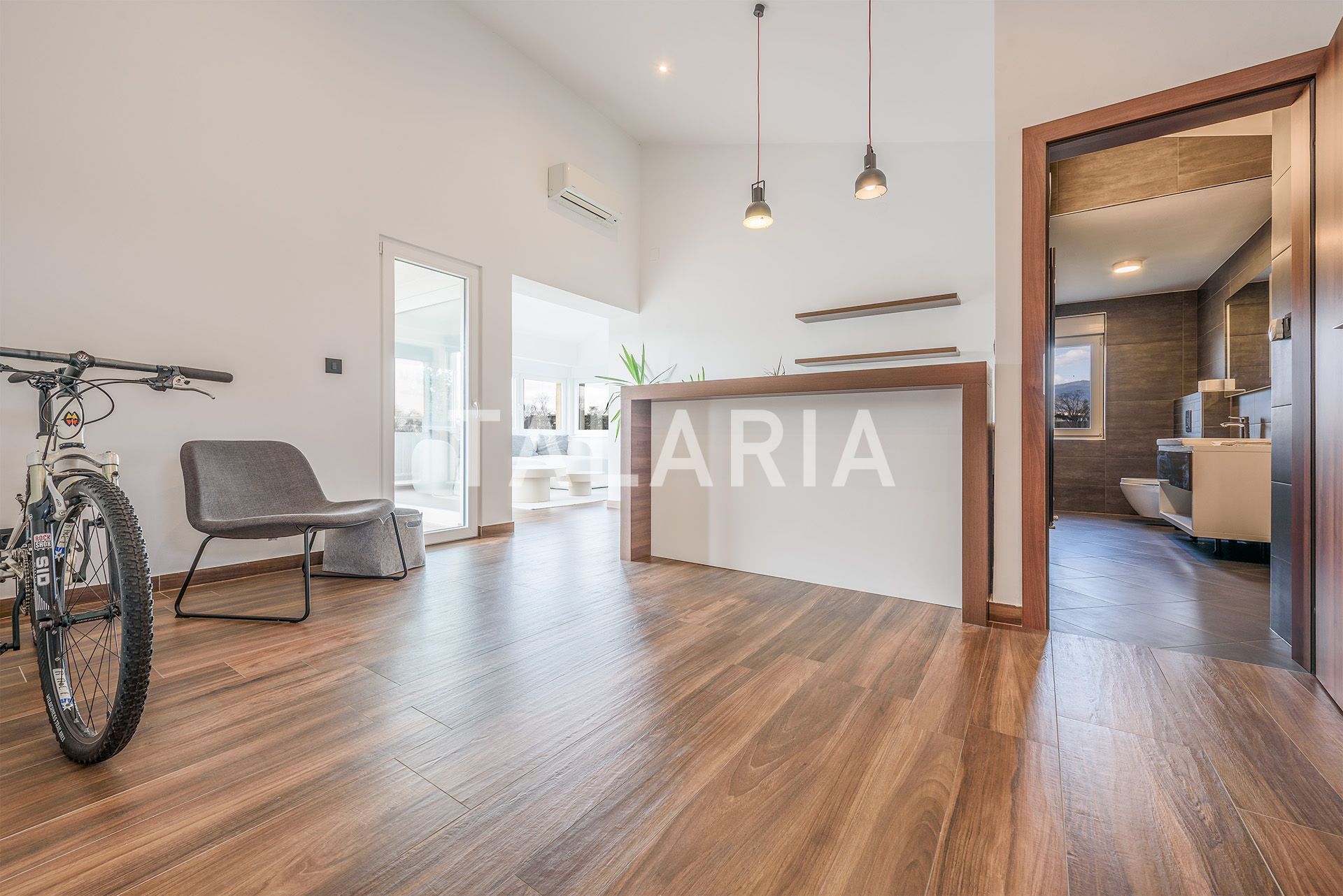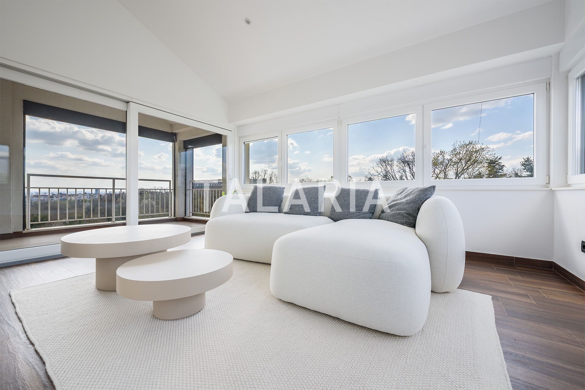 A fully furnished two-level apartment of 240 m² located on the 2nd floor of a building constructed in 1997. The first level features a spacious living room with access to a large terrace, a dining area, a separate kitchen, 2 bedrooms, 2 bathrooms, and a smaller study or walk-in closet. Stairs lead to the 2nd level, which consists of a living room with access to a balcony, a bedroom with a walk-in wardrobe, and a bathroom. The apartment is oriented to all 4 sides of the world making it very bright and offering a beautiful view of greenery. It comes with one garage space and one outdoor parking space.It is situated in an excellent location in Srebrnjak, close to all essential amenities.