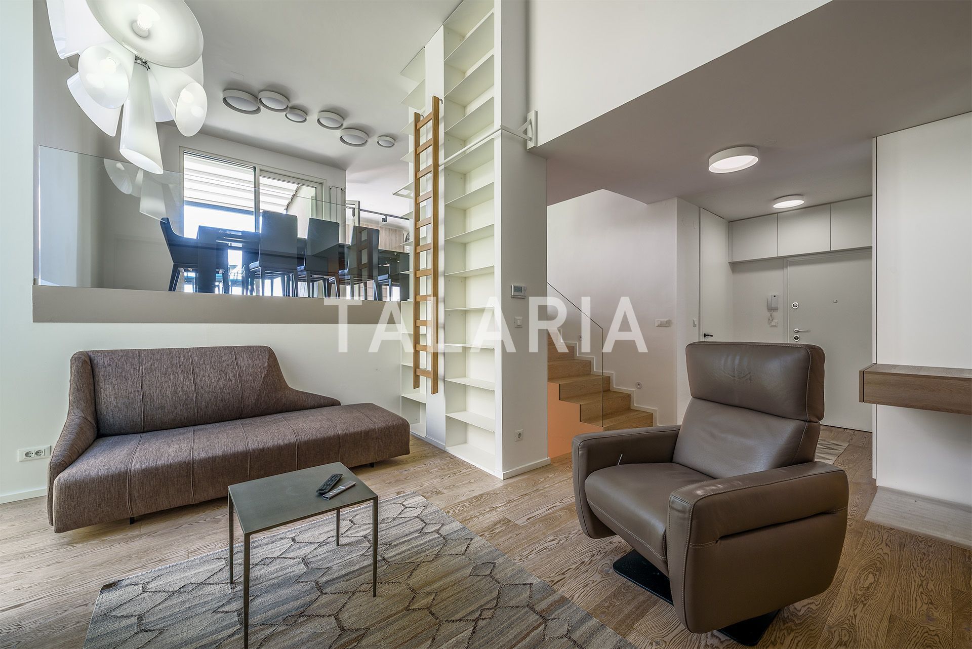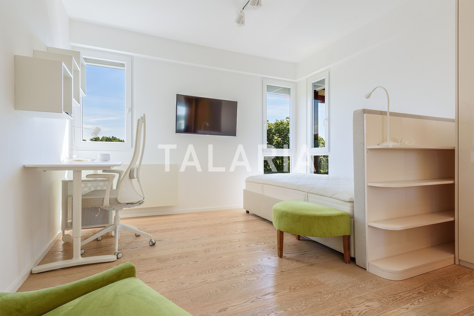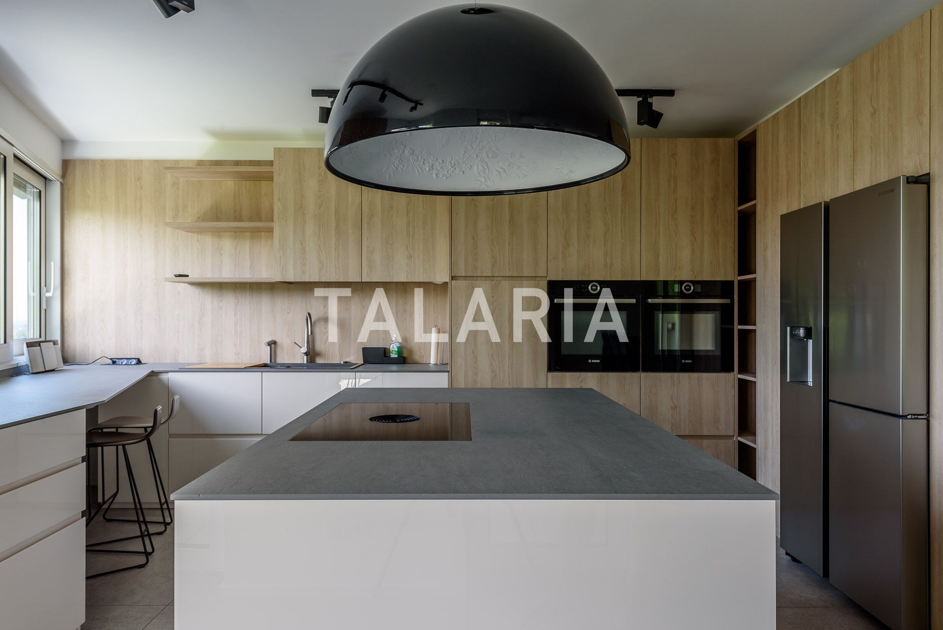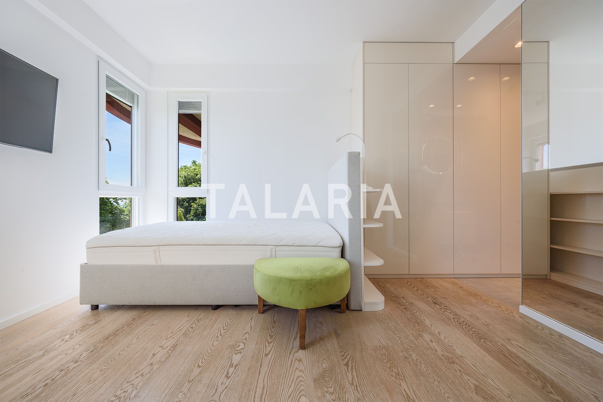 Predivan obiteljski, moderno adaptiran stan razigran po poluetažama nudi komforno stanovanje za četveročlanu obitelj. Na glavnoj etaži uz ulaz u stan nalazi se gostinjski toalet, roditeljska soba sa garderobom i kupaonom , te dnevni boravak. Iz boravka se stepenicama penjemo ka luksuzno opremljenoj kuhinji sa velikom blagovaonom koja se nastavlja na natkrivenu terasu s pogledom na zelenilo. Iz boravka stepenicama dole, dolazimo do 2 dječje sobe svaka sa svojom kupaonom i garderobom. Stanu pripada jedno parkirno mjesto pred zgradom. Vrlo šarmantan! Preporuka agencije!