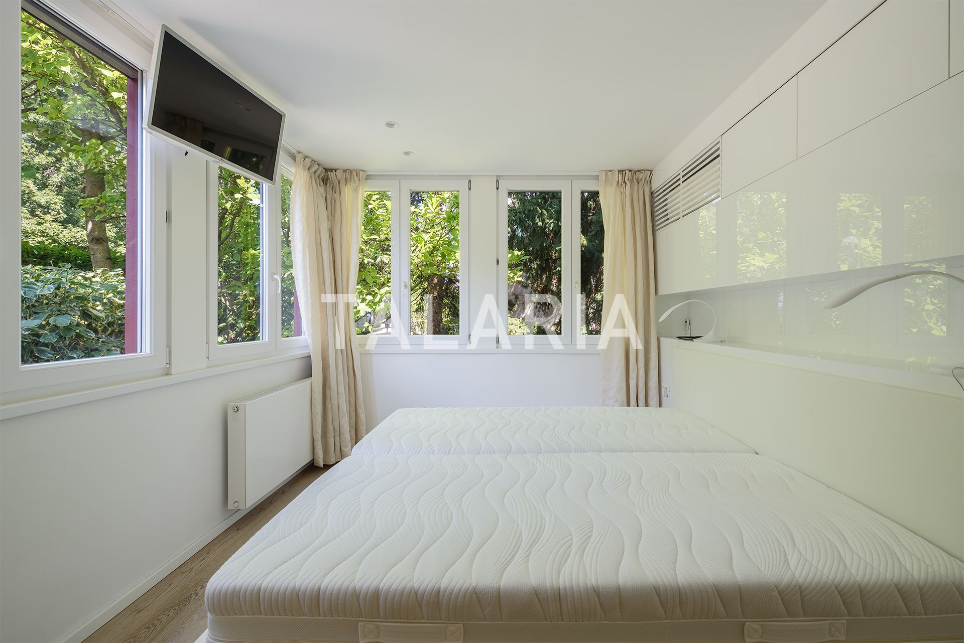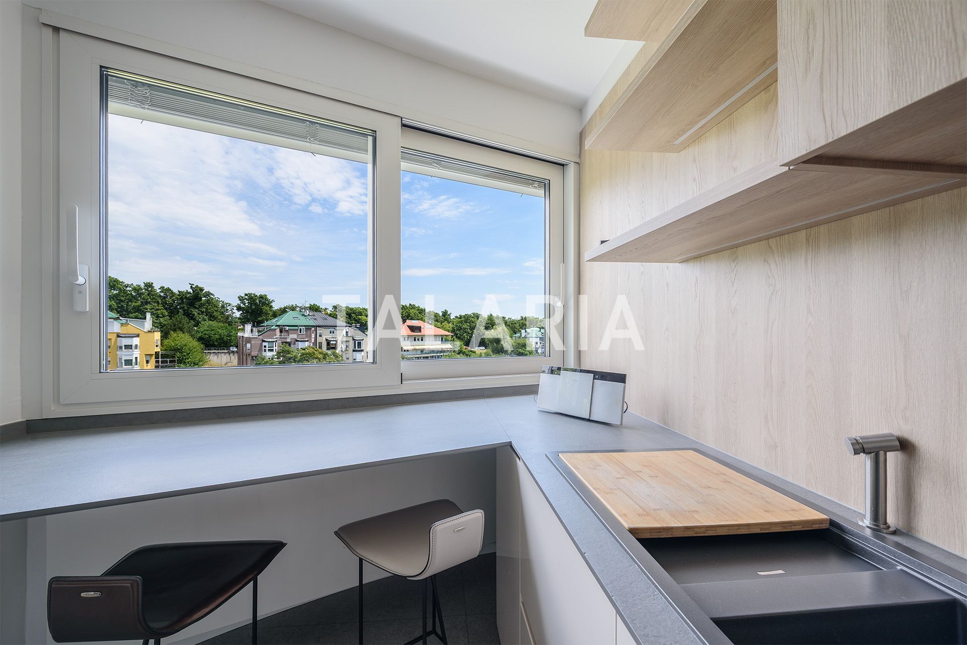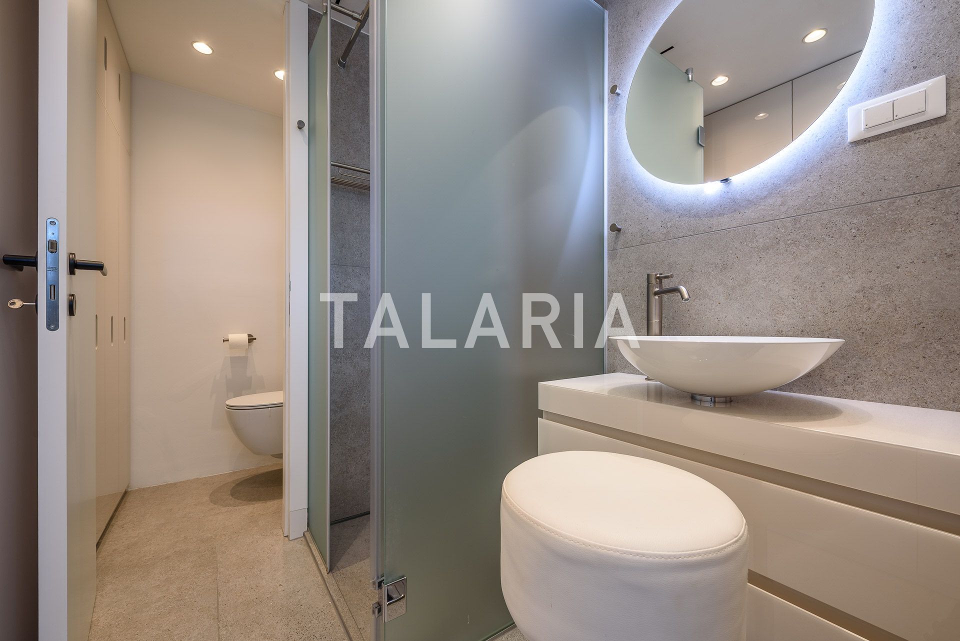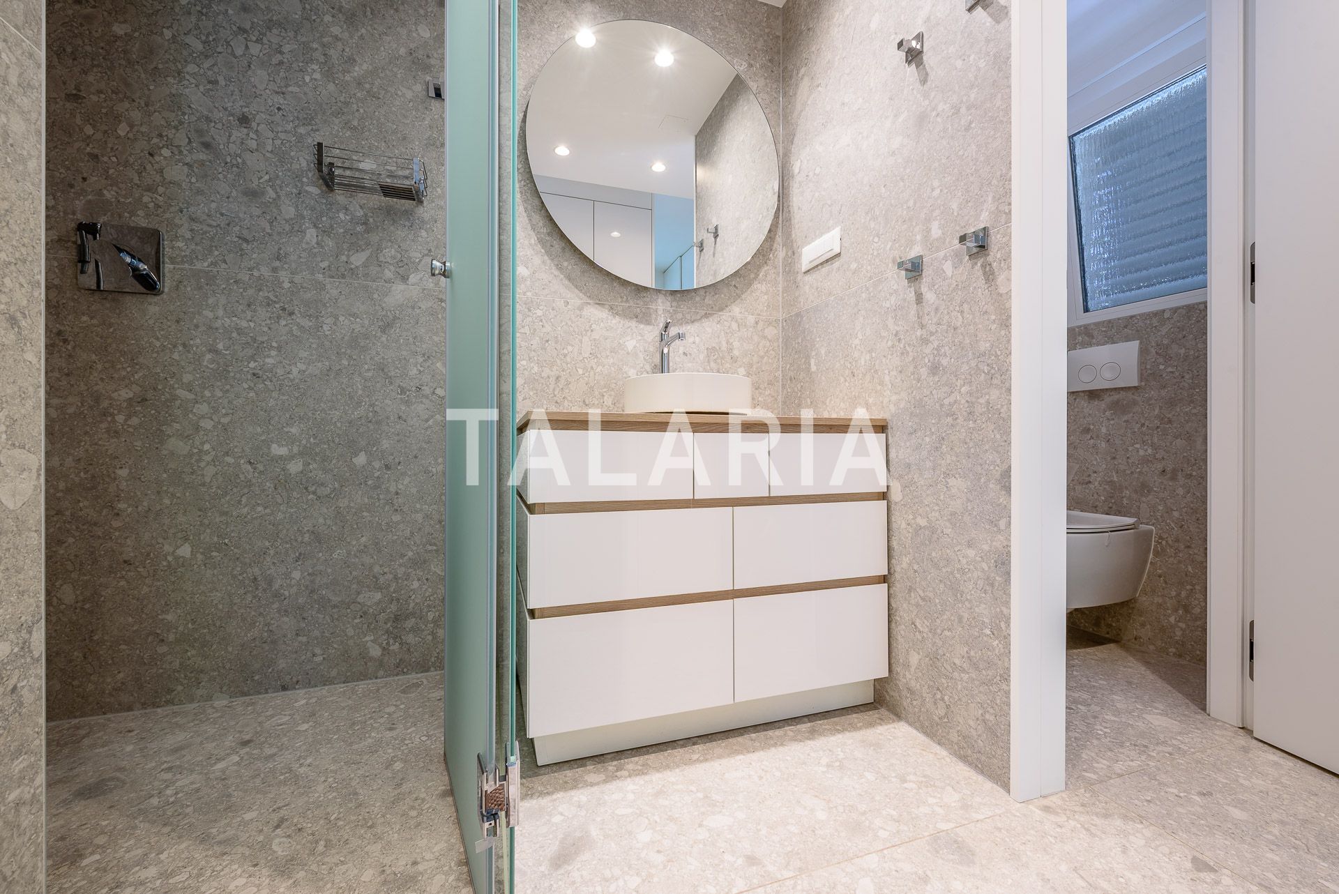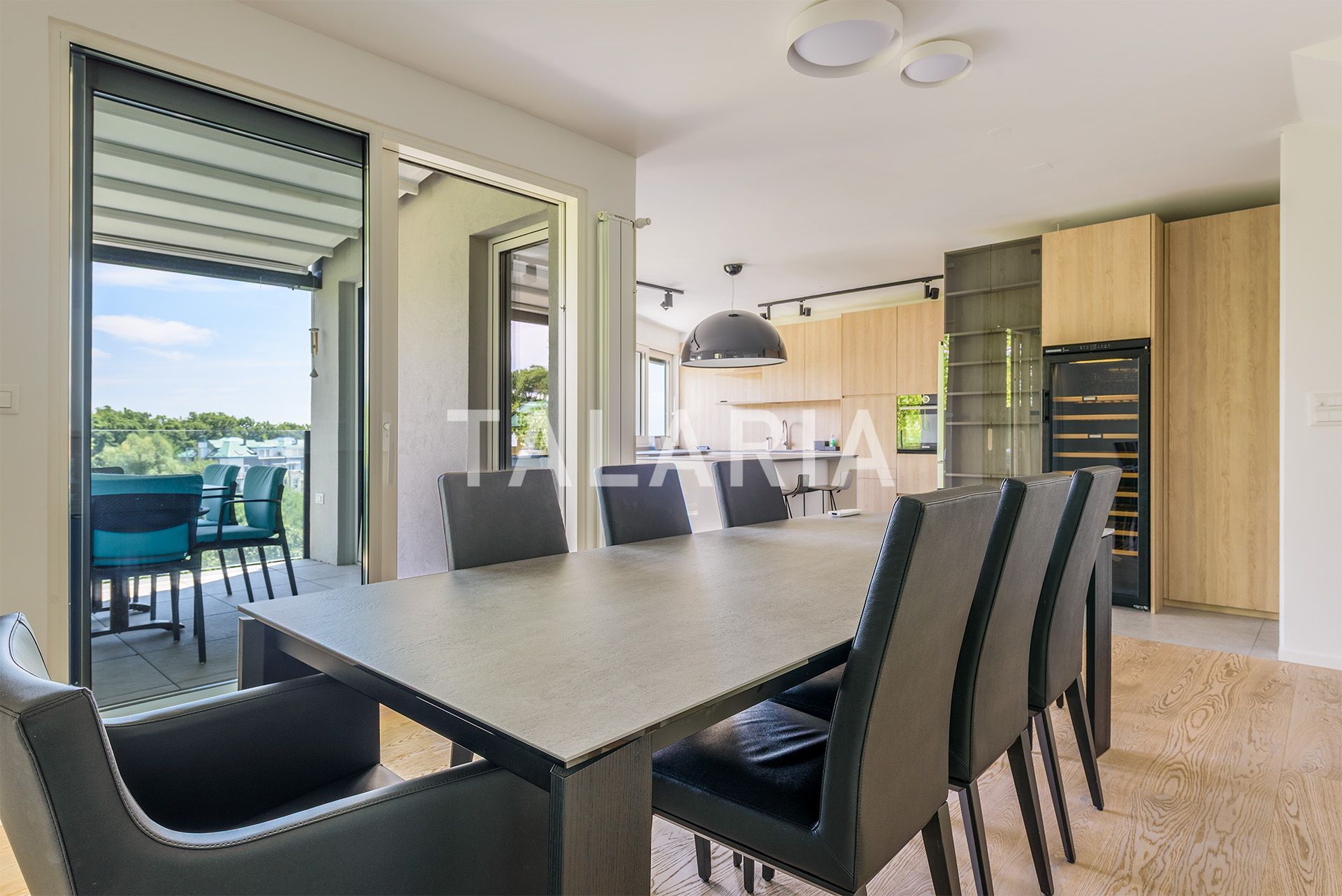 Predivan obiteljski, moderno adaptiran stan razigran po poluetažama nudi komforno stanovanje za četveročlanu obitelj. Na glavnoj etaži uz ulaz u stan nalazi se gostinjski toalet, roditeljska soba sa garderobom i kupaonom , te dnevni boravak. Iz boravka se stepenicama penjemo ka luksuzno opremljenoj kuhinji sa velikom blagovaonom koja se nastavlja na natkrivenu terasu s pogledom na zelenilo. Iz boravka stepenicama dole, dolazimo do 2 dječje sobe svaka sa svojom kupaonom i garderobom. Stanu pripada jedno parkirno mjesto pred zgradom. Vrlo šarmantan! Preporuka agencije!