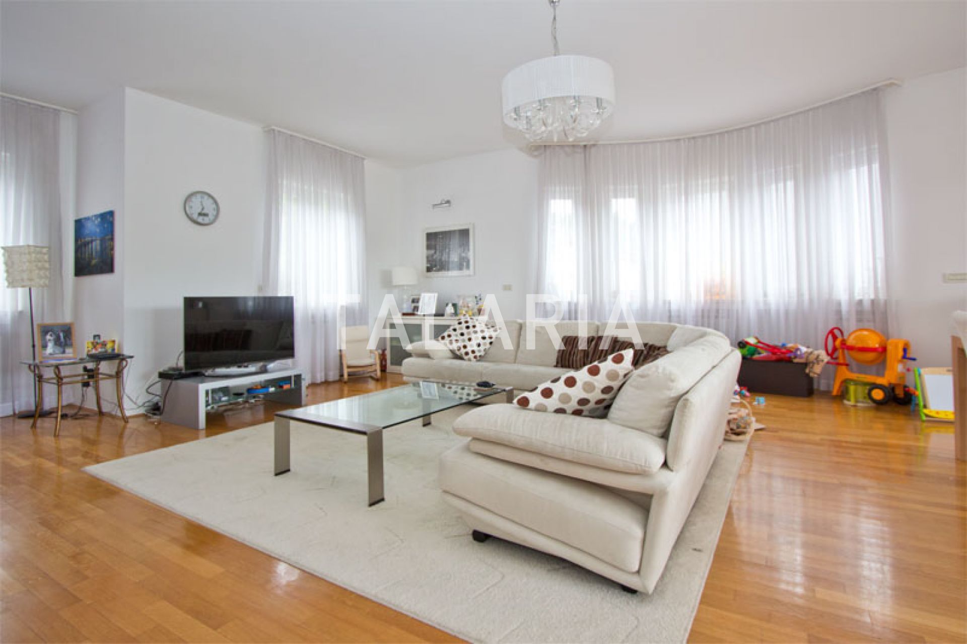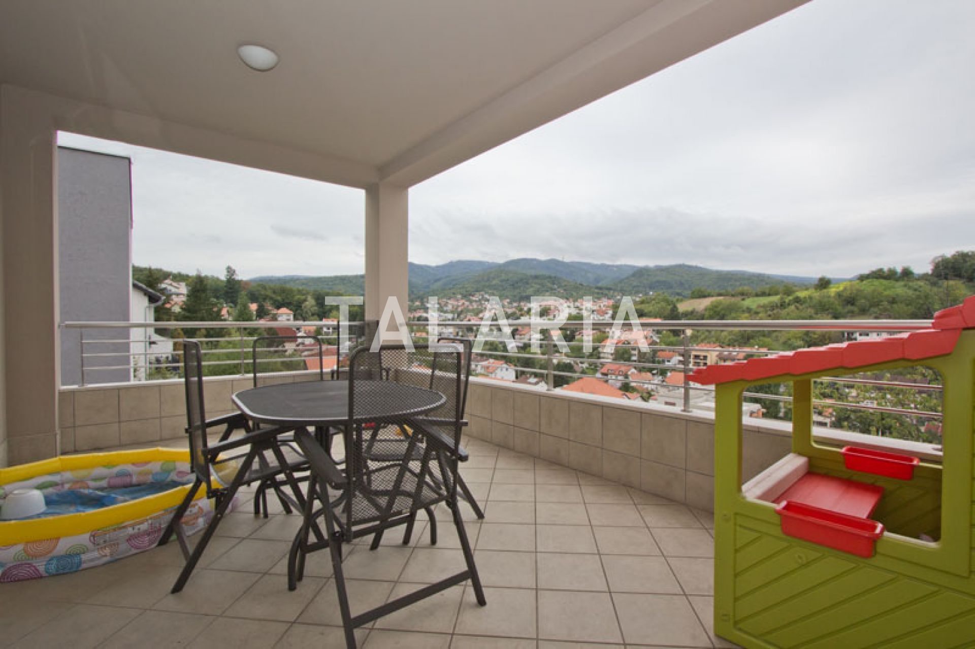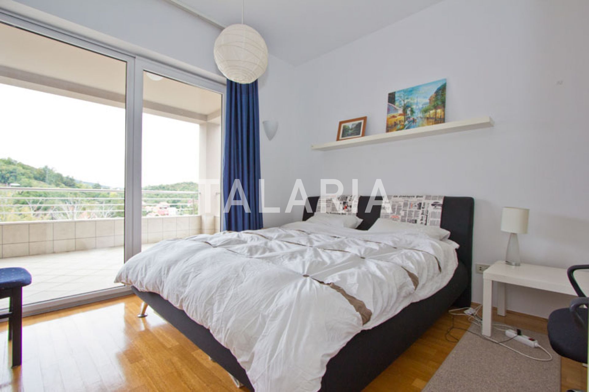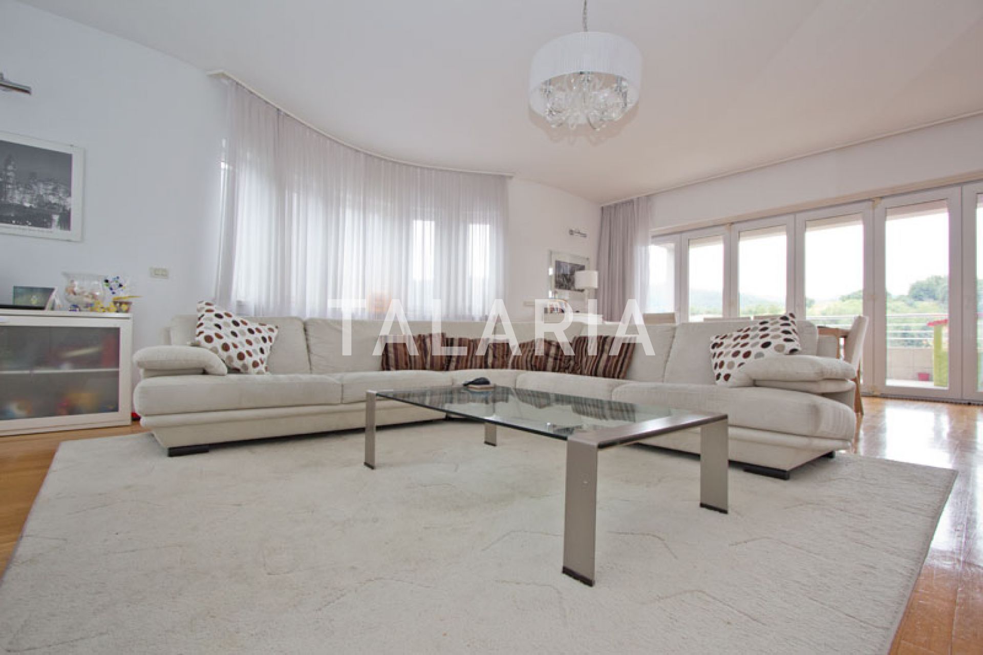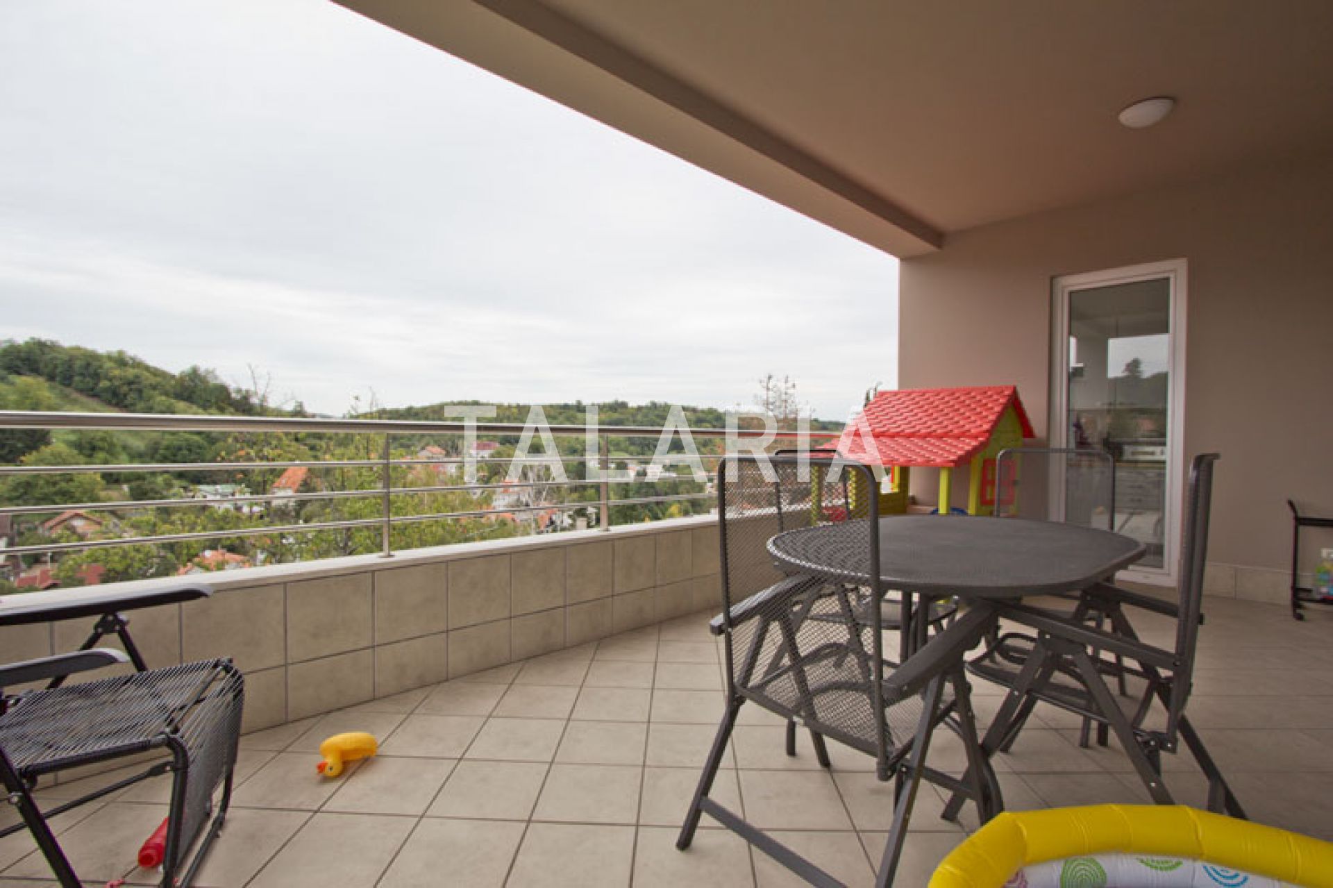 Iznajmljuje se moderan i ugodan obiteljski stan u otmjenoj zgradi s 3 stana. Stan se nalazi na 2. katu urbane vile, a sastoji se od 3 spavaće sobe, 2 kupaone, gostinjskog WCa, 2 terase te ostave. Iz boravka se izlazi na prostranu terasu s koje se pruža predivan pogled. Stanu pripada dupla garaža u prizemlju zgrade. Stan je slobodan od 01.04.