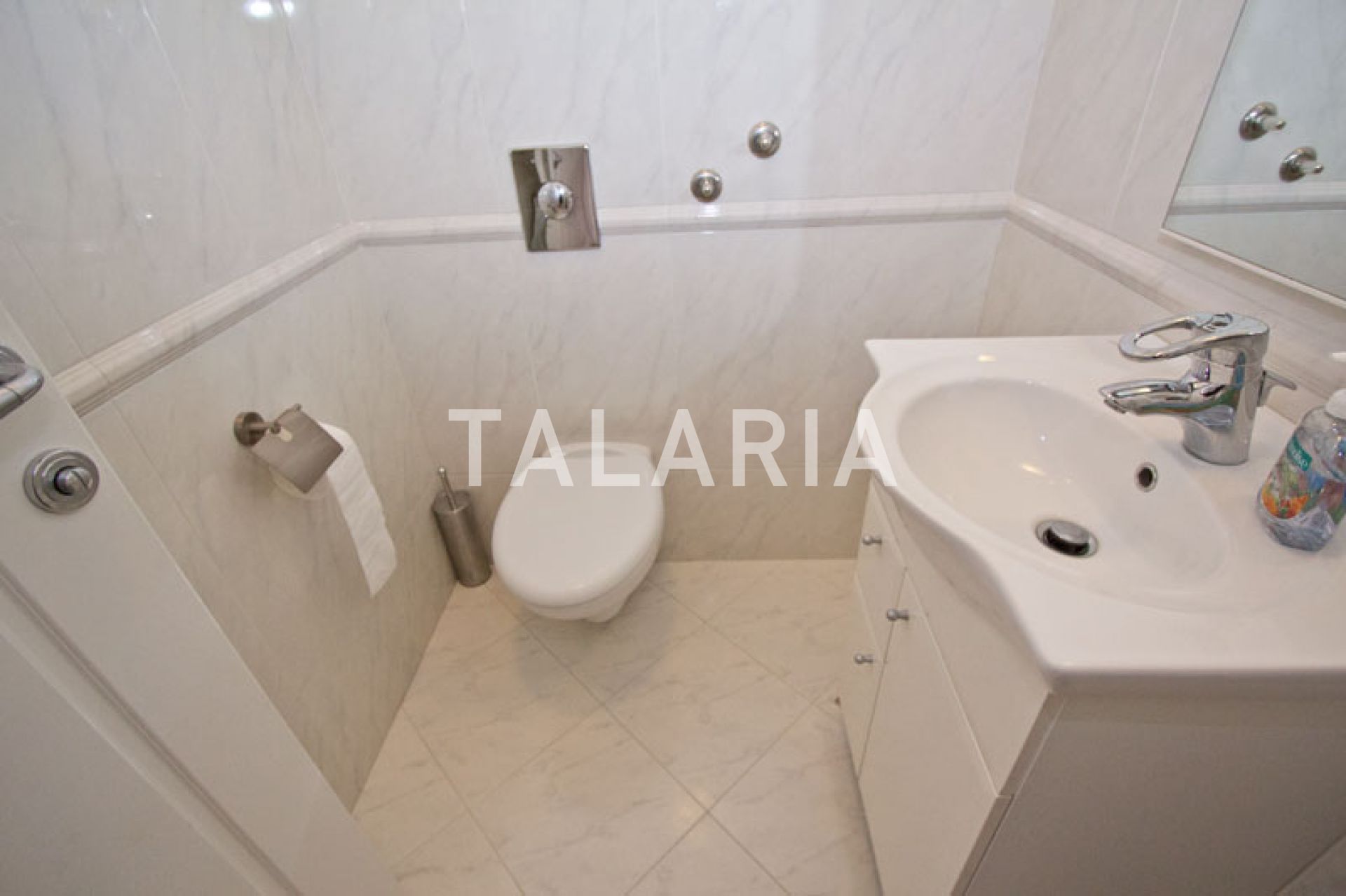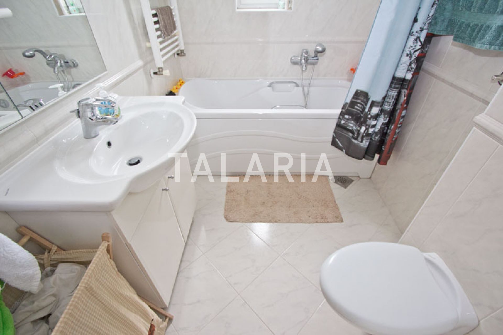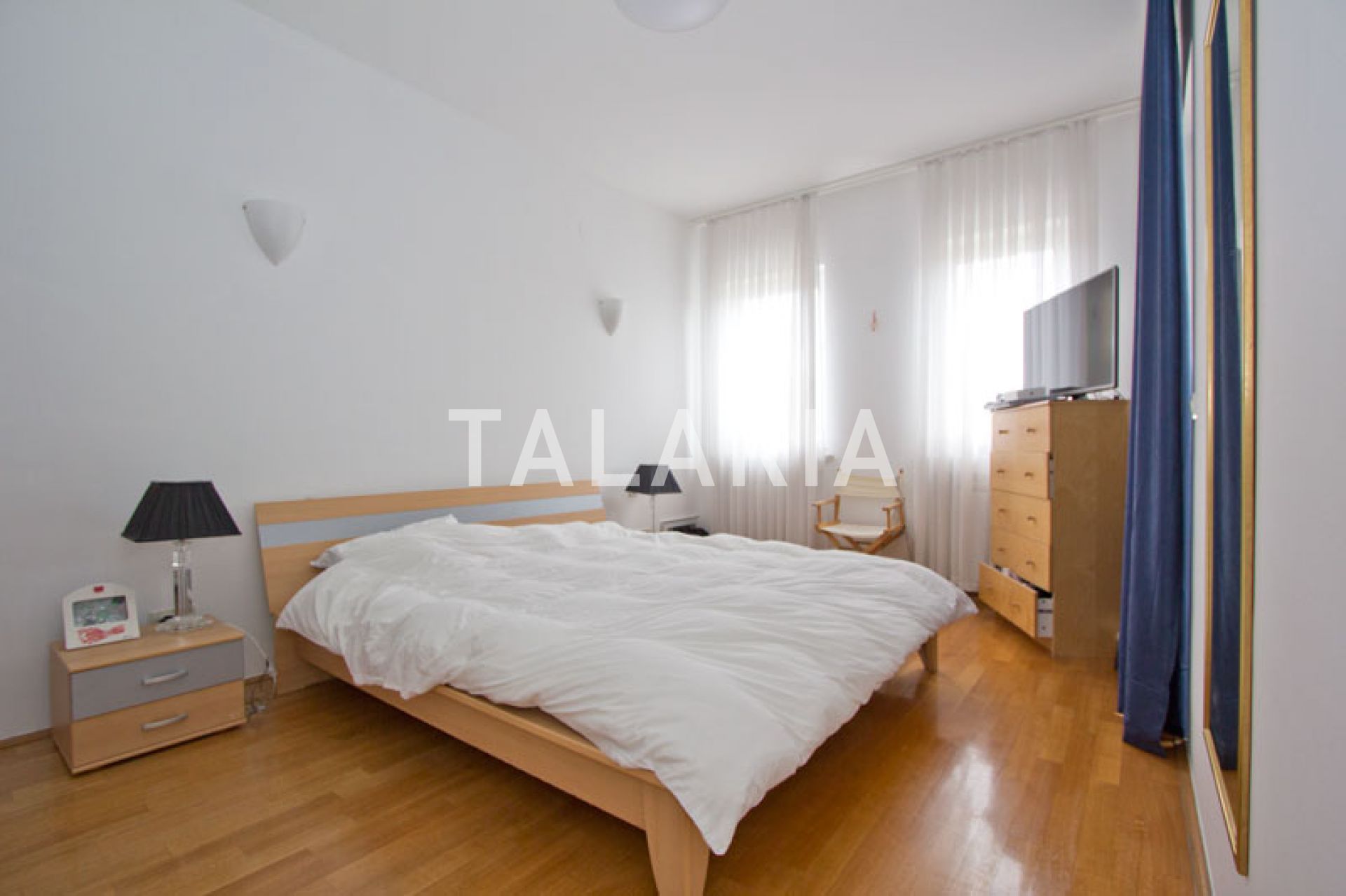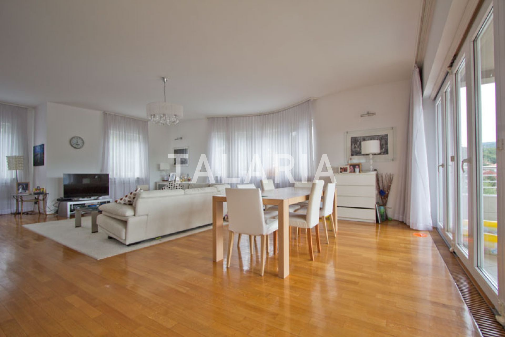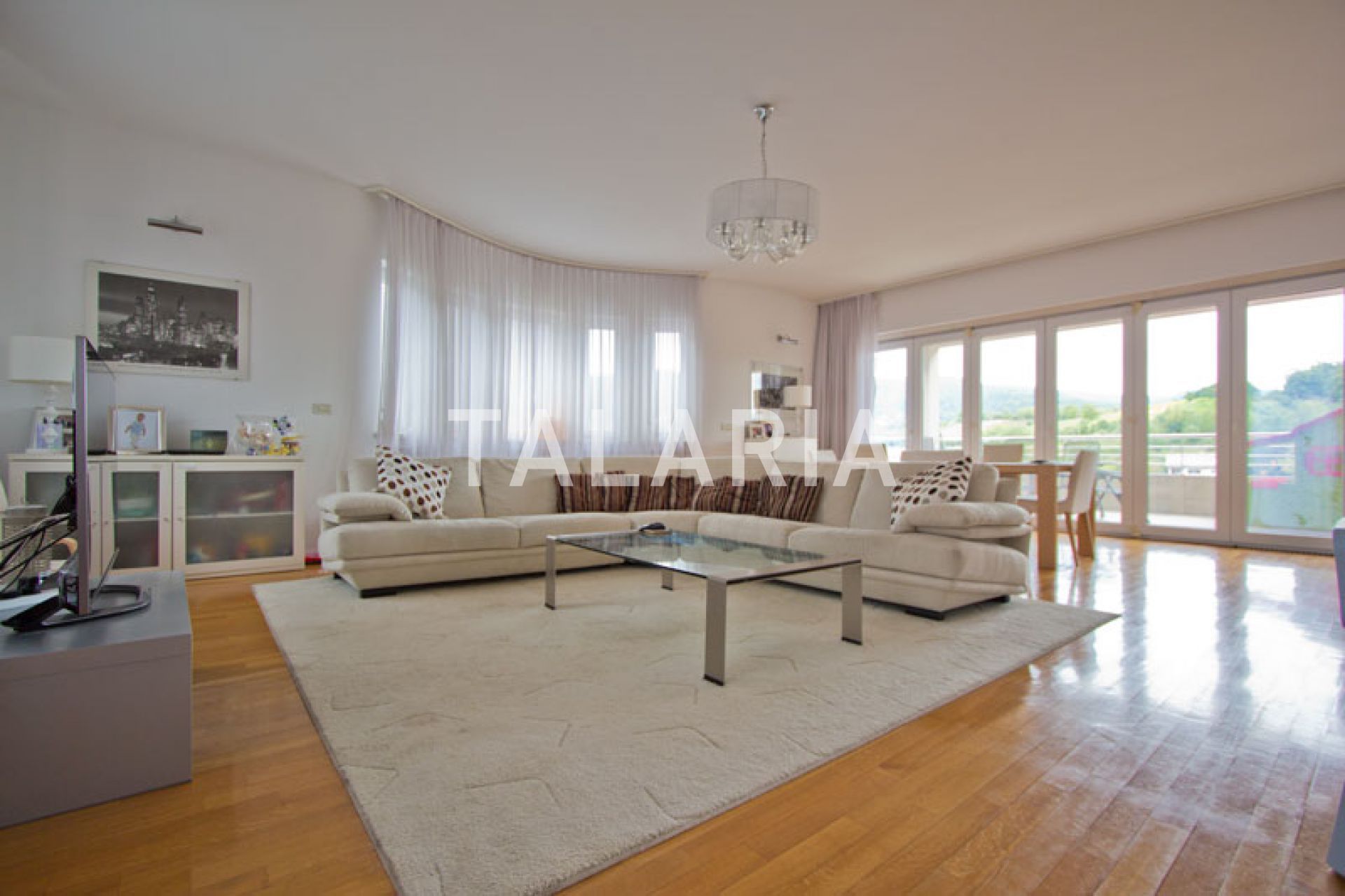 Iznajmljuje se moderan i ugodan obiteljski stan u otmjenoj zgradi s 3 stana. Stan se nalazi na 2. katu urbane vile, a sastoji se od 3 spavaće sobe, 2 kupaone, gostinjskog WCa, 2 terase te ostave. Iz boravka se izlazi na prostranu terasu s koje se pruža predivan pogled. Stanu pripada dupla garaža u prizemlju zgrade. Stan je slobodan od 01.04.