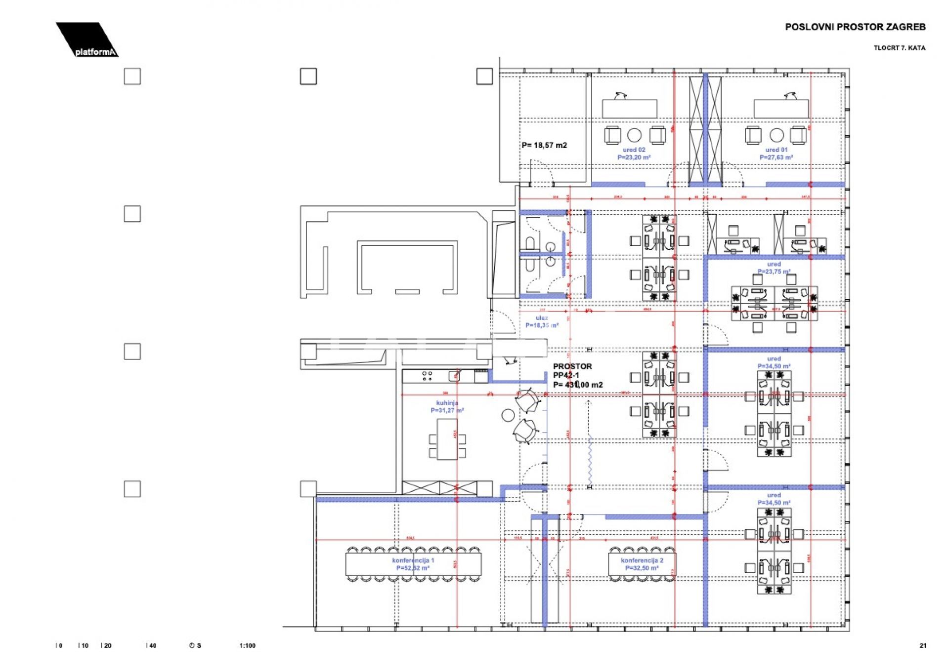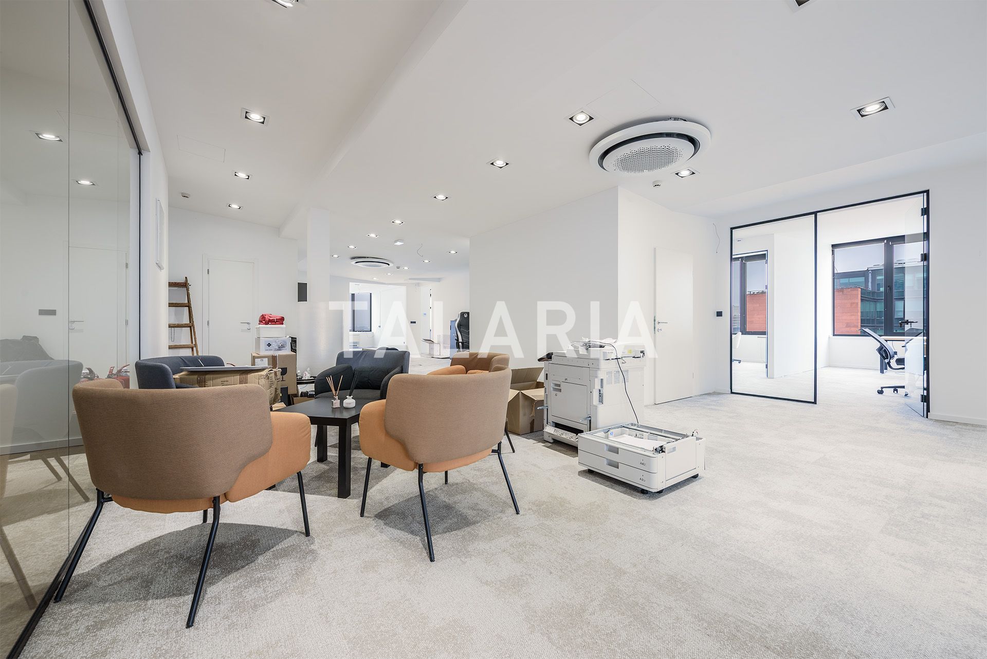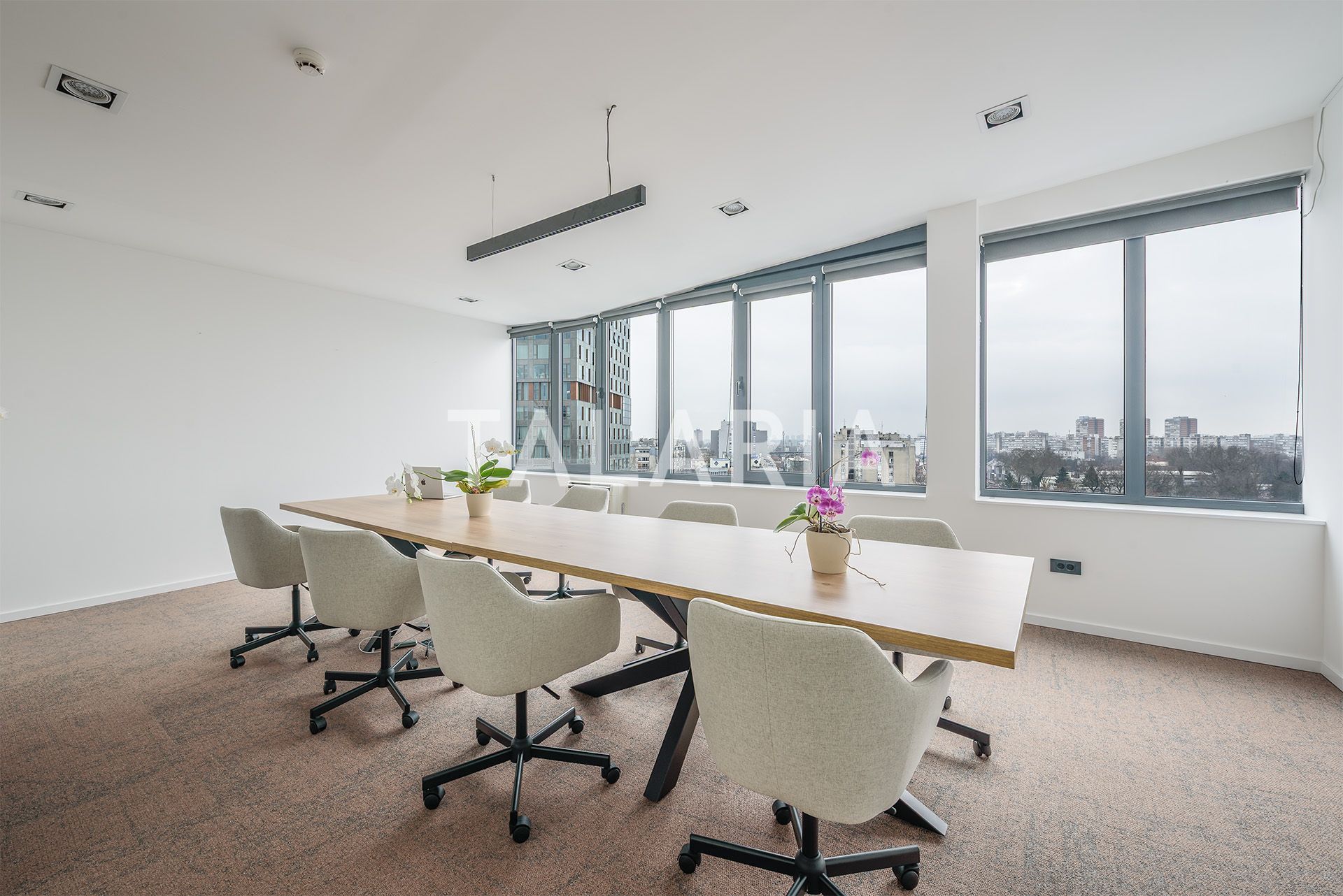 Nalazi se na 7. katu zgrade, ima velike prozore s otvorenim urbanim pogledom na poslovnu zonu. Okrenut je na 3 strane svijeta te cijeli dan obiluje svjetlom.